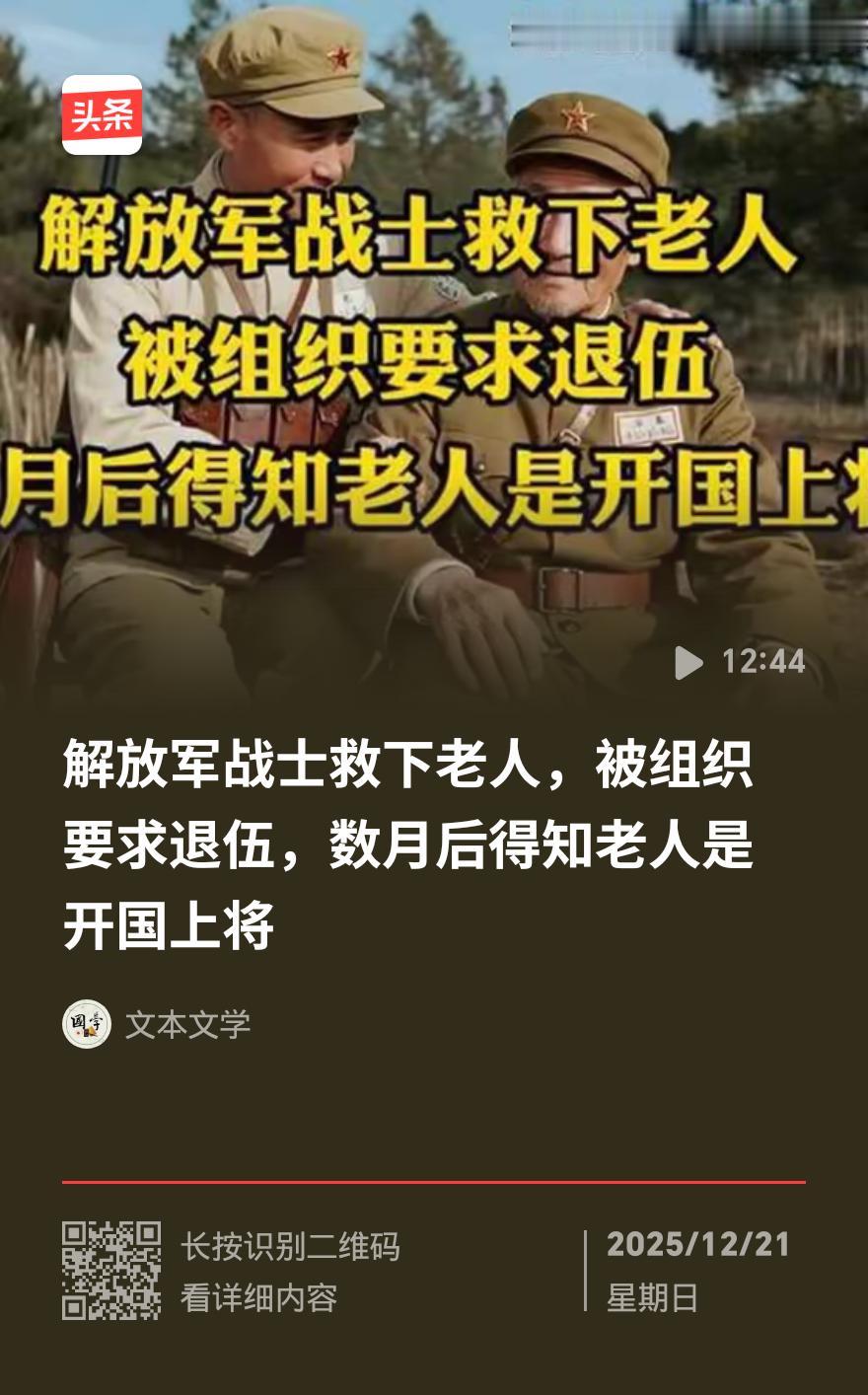 小兵善待“特殊病人”被退伍,多年后惊觉对方是开国上将 1972年,本是提干好苗子的战士赵保群,因善待一位“特殊病人”,不仅丢了提干名额,还被勒令退伍返乡。谁也没想到,这位他悉心照料的老人,竟是开国上将张爱萍。 当时赵保群接令带战士去301医院监护化名“张绪”的病人,军令要求不准交谈、不准提供便利。可看到老人护着发霉馒头舍不得扔,赵保群心就软了。老人左腿骨折卧床不起,他不嫌脏累,端屎端尿、擦身刮胡子,把老人当自家长辈伺候。 老人曾叮嘱他这事水深,恐连累前程,赵保群却只认一个理:当兵的不能欺负老弱病残。任务结束时,老人才吐露真名——张爱萍。 归队后赵保群果然被牵连,1973年退伍回村,他守着这段往事绝口不提,踏实种地过日子。另一边,官复原职的张爱萍将军却记挂着恩人,托战友、找记者,寻了十几年。 1986年,记者终于在江苏海安乡村找到正在务农的赵保群。次年两人重逢,老将军泣不成声。面对“为何不主动求助”的疑问,赵保群朴实地说:“俺有手有脚,哪能给首长添麻烦。” 临别时,张爱萍将军挥毫写下“一生正气”四字相赠,这既是对救命之恩的感念,更是对普通士兵坚守良知的最高褒奖。