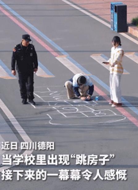 “解释不清了!”四川德阳,两个高中女生趁着课间,在上课的必经路上,用粉笔画了个"跳房子"的游戏,没想到,接下来发生的一幕幕,让人既想笑,又想哭……网友:他们好像跳错了,因为没有跳回去;他们好像又没跳错,因为好像回不去了。 四川德阳这所普通高中的教学楼下,铃声刚落,学生们像潮水一样从教室里涌出来。 有人抱着作业本狂奔去厕所,有人趴在走廊栏杆上透气,还有人低头刷着题目,嘴里念念有词,生怕下一节课被点名。 就在这看似再寻常不过的一天里,两名高二女生做了一件谁也没想到的小事。 她们没有刷手机,也没有聊天,而是蹲在教学楼与操场之间那条“上课必经路”上,悄悄拿出一截白色粉笔,在灰色的水泥地面上画了起来。 一格、两格、三格…… 歪歪扭扭,却格外认真。 那是一个很多年没在校园里出现过的图案——跳房子。 没有标语,没有署名,只是简单地画了数字,从“1”到“8”,最后一格画成半圆,像一个不太标准的“家”。 画完最后一笔时,粉笔已经只剩下短短一截。两个女生站起身,相视一笑,又迅速混进了人群,仿佛什么都没发生过。 可接下来发生的事,让她们怎么也没想到。 最先停下脚步的是一名低年级男生。他原本低头看书,余光瞥见地上的图案,愣了两秒,忽然笑出声来。 “跳房子?” 他左右看了看,像是怕被老师发现,最终还是忍不住把书夹在腋下,单脚一跳。 第一格,稳稳落地。 第二格,差点踩线。 第三格时,他已经笑得站不稳了。 身后的同学先是一愣,随后像被传染了一样,一个接一个停下来。有人掏出手机拍照,有人干脆排起了队。 原本匆忙的过道,忽然慢了下来。 几分钟后,一位推着清洁车的后勤阿姨路过。她本想绕开,可低头一看,眼神突然柔软了。 “哎呀,这不是我们小时候玩的嘛。” 她把扫帚靠在墙边,利索地把拖把往车上一放,抬脚就跳了上去。动作不算标准,却格外熟练。围观的学生鼓起掌来,她笑着摆摆手,却又忍不住多跳了一格。 “好多年没跳了。” 不久,一名值班保安大叔也被吸引了过来。他原本表情严肃,双手背在身后,站在一旁看了很久。有人起哄:“大叔,来一个!” 他假装没听见,转身走了两步,却又停下,回头看了一眼地上的数字。 下一秒,他脱下帽子,递给旁边的学生,抬脚跳进了第一格。 动作有点笨拙,却异常认真。跳到最后一格时,他站在那里,愣了一会儿,才慢慢走下来,什么也没说,只是把帽子重新戴好,继续巡逻。 有学生注意到,他的步子比刚才慢了许多。 真正让人意外的,是一位路过的任课老师。她抱着教案,原本只是皱着眉看了一眼,似乎在犹豫要不要擦掉。可不知怎么的,她忽然把教案夹在胳膊下,轻轻叹了口气。 “就跳一次。” 她脱下高跟鞋,换成平底鞋,站在第一格前,深吸了一口气。 那一刻,周围异常安静。 她跳得很慢,却一步不落。落地时,粉笔线被踩得有些模糊,但她脸上的笑容,却像回到了学生时代。 “上课了,上课了。” 她穿上鞋,笑着催促学生,却没有擦掉地上的图案。 消息很快传到了学校领导那里。有人以为这会被当成“影响秩序”的行为,可当几位领导走到现场时,却同时停住了脚步。 他们没有说话,只是看着学生、工人、老师在那一格一格地跳。 其中一位年纪最大的副校长,沉默了几秒,忽然说:“我小时候,家门口也画过。” 他没有跳,但那天之后,直到放学,地上的“跳房子”都没有被清理。 放学铃声响起时,粉笔线已经被踩得模糊不清,可仍然有人小心翼翼地避开,像是在保护什么珍贵的东西。 那两个画画的女生,站在远处,看着这一幕,红了眼眶。 后来,这段视频被传到网上。 有人笑着评论:“他们好像跳错了,因为没有跳回去。” 也有人接着说:“他们好像又没跳错,因为好像回不去了。” 只是在人生最忙、最重的一段路上,忽然有人在地上画了一格童年,让所有路过的人,哪怕只是一瞬间,记起自己也曾轻盈地跳过。