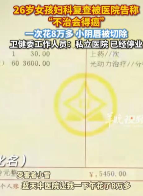 河北石家庄,26岁女孩去做妇科复检,结果医生告诉她,要做手术,否则会得癌,于是她的小阴唇被切除了,花了8万多元,可手术之后,她的病非但不好,还又痛又痒的,事后她发现,多名患者,都是这么被忽悠做手术了。 今年春天,小雪因白带异常,来到石家庄蓝天中医院做妇科复查。此前,她在其他医院体检时并未发现严重问题,只是医生建议定期观察。 然而,在这家医院的诊室里,检查刚结束,主治医生的神情却骤然严肃起来。 “你这个情况很危险,”医生指着检查单对小雪说,“宫颈上长了赘生物,如果不尽快处理,很可能会癌变。不仅以后生不了孩子,严重的话命都保不住。” 这一番话让小雪当场慌了神。她回忆说,医生反复强调“不能拖”“越早手术越好”,并不断提到“癌变”“终身遗憾”等后果。在封闭狭小的诊室里,小雪几乎没有思考的余地。 她提出想回去和家人商量,医生却表示:“这种情况拖一天就多一分风险。”随后,另一名工作人员进入诊室,开始介绍所谓的“微创手术方案”,并给出了价格——将近8万元。 对于刚工作不久的小雪来说,这无疑是一笔天文数字。她当场表示拿不出这么多钱。没想到,对方并未劝她慎重考虑,而是迅速给出“解决办法”。 “可以用花呗、信用贷,不行就找朋友先借,命重要还是钱重要?”工作人员的话,让本就紧张的小雪更加恐慌。 她说,整个过程中,几乎没有人明确告诉她具体诊断名称、手术必要性,也没有提供病理报告供她参考。 在焦虑与恐惧的裹挟下,小雪妥协了。 她当场联系朋友借了2.5万元,又在工作人员的指导下办理了5万元贷款。凑齐费用后,手术很快被安排进行。 术后,小雪才得知,自己的小阴唇被切除了一部分。她表示,事前并未被清楚告知手术范围和可能带来的长期影响。 更让她难以接受的是,手术结束后,她的症状非但没有缓解,反而出现了持续的疼痛、瘙痒和心理阴影。 “我整晚睡不着,一闭眼就想到手术台,”小雪说。她多次回医院咨询,得到的回复却是“恢复期正常反应”“再观察看看”,并被建议继续接受其他治疗。 随着时间推移,小雪开始怀疑这场手术的必要性。她前往正规三甲医院复查,得到的结论却让她震惊:所谓的“赘生物”并不属于必须手术的严重病变,完全可以保守治疗或定期随访。 这让小雪感到愤怒又无助。抱着试试看的心态,小雪开始在网络上搜索相关信息。她在社交平台输入医院名称和“妇科手术”等关键词,很快就看到大量相似的帖子。 有人描述的情景几乎和她一模一样:本是常规检查,却被告知“情况很严重”“再拖就会癌变”;有人提到,医生反复渲染后果,让人根本不敢拒绝。 还有人说,在表达经济困难后,医院人员主动推荐分期付款、网络贷款,甚至直接指导操作流程。 随着搜索的深入,小雪加入了几个维权群。群里大多是年轻女性,来自不同城市,却有着相似的经历。有人晒出了厚厚一叠缴费单据,金额从几万元到十几万元不等。 有人术后留下了长期不适,却始终得不到明确解释;也有人在其他医院复查后,被告知原本并不需要手术。群里的聊天记录每天都在刷新,一条条讲述着恐惧、后悔与无助。 看着这些经历,小雪的手不停发抖。 目前,小雪已向相关部门投诉,并保留了病历、缴费记录等材料。她希望通过维权,不仅为自己讨回一个说法,也提醒更多女性在面对类似情况时保持警惕。 “身体是自己的,但恐惧不是医生可以利用的工具。”小雪说。 关于此事,相关医院尚未公开回应。事件仍在进一步调查中。