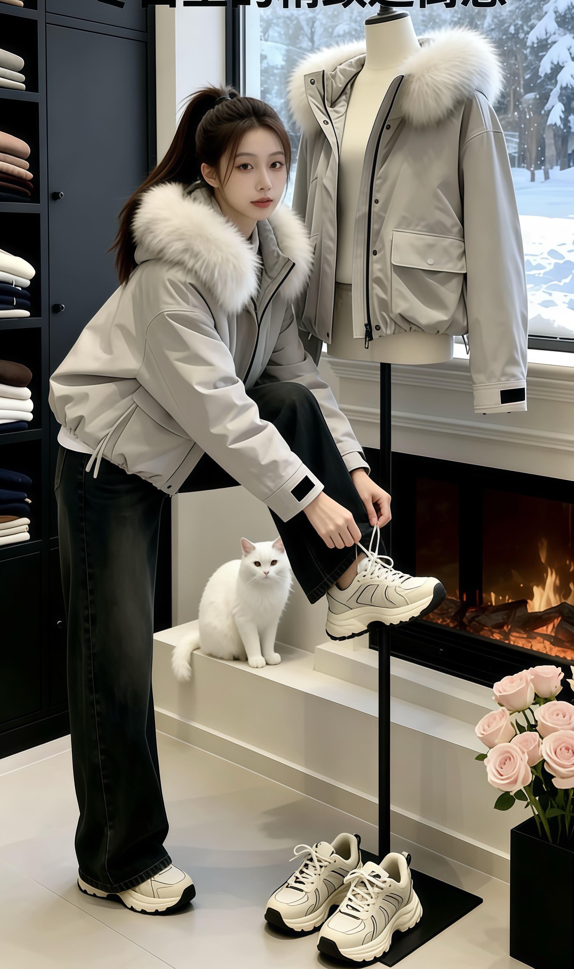 冬日飘雪的窗边,这件蓬松黑羽绒承包了所有松弛暖意,文艺氛围感拉满
