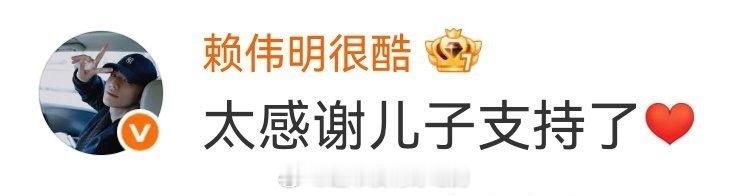 田嘉瑞给赖伟明宣传新剧赖伟明回复:太感谢儿子支持了