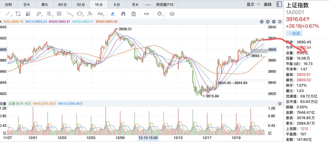 逢高减仓,这周大盘后续会有很大的波动!这周是跨年前的一周,指数已经重回3900点