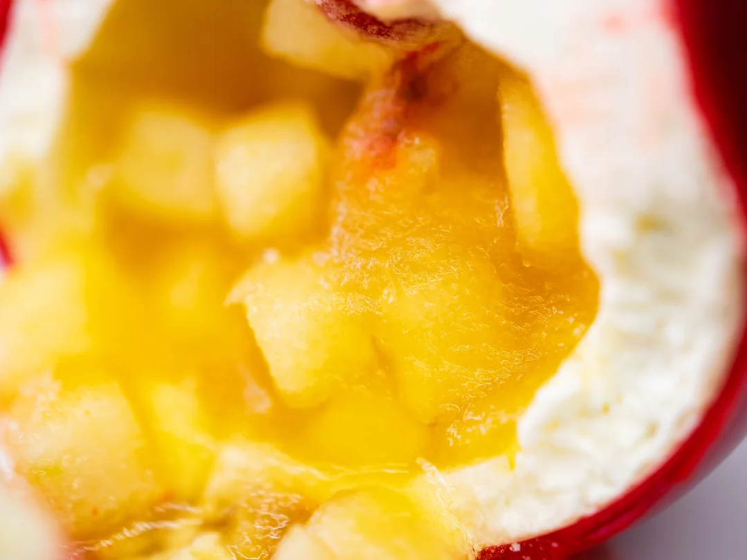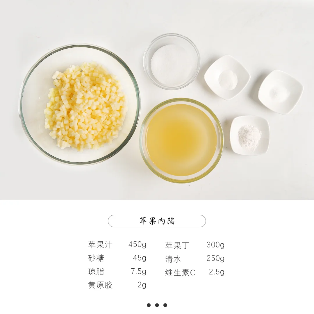 5、加入新鲜苹果丁翻拌均匀,装到15连半圆模具中抹平,冷冻至不沾手后将两半贴合成球入冰箱冷冻冻硬。