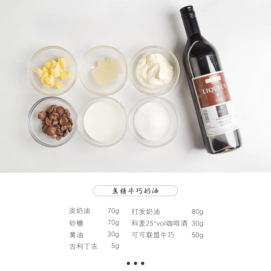 1⃣️ 1、淡奶油倒入锅中煮沸,同时另一个锅倒入砂糖熬煮焦糖,煮至呈现琥珀色后加入淡奶油,搅拌均匀离火。