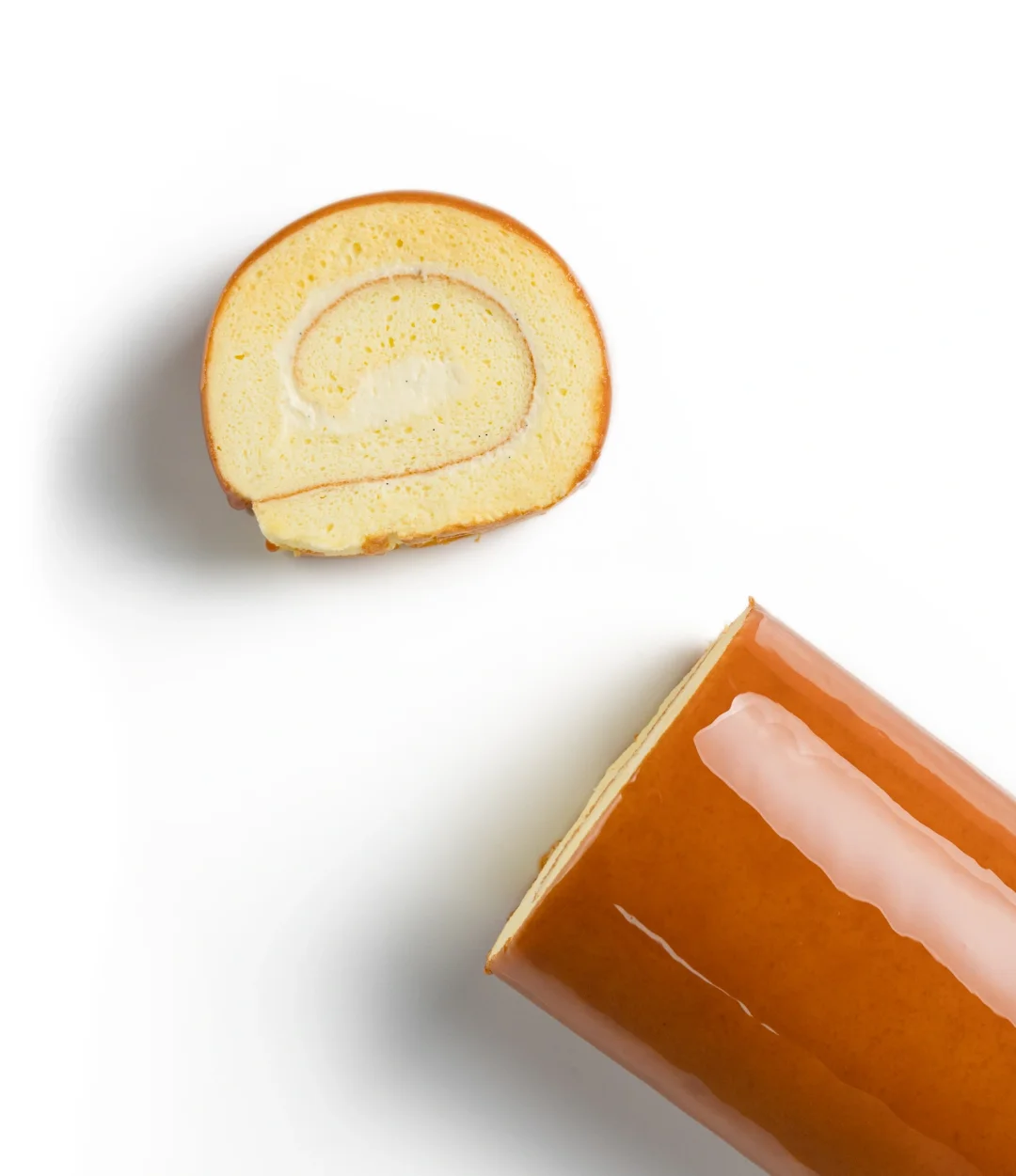 . 🍰今天来制作一款秋日焦糖色甜品,bulingbuling内外兼修,口味与颜值俱佳的蛋糕卷登场~ . 🍰配方看图上哦 . 🍰注意点 1⃣️ 焦糖蛋糕卷 1、牛奶、盐和黄油搅拌加热煮至沸腾离火,过筛筛入低筋粉搅拌成糊状,用均质机打至顺滑后整体均匀过筛,此时面糊在 65-70°C,降温备用。 2、蛋黄和砂糖B打发至细腻的象牙质地,分次加入到降温至40°C的面糊中翻拌均匀。 3、蛋清、塔塔粉和砂糖A打发至湿性发泡。 4、取三分之一蛋白霜加入到面糊中翻拌均匀,再与剩下的蛋白霜翻拌至细腻质地。 5、平炉上火190°C下火160°C烤制24分钟。 . 2⃣️ 芝士香缇奶油 1、香草荚刮出香草籽,加入砂糖和芝士微波打软后搅拌混合均匀。 2、少量多次地加入淡奶油搅拌均匀,这样能够避免产生颗粒,然后将奶油打发至可裱挤质地。 . 3⃣️焦糖淋面 1、白巧克力、吉利丁冻和炼乳倒入量杯备用。 2、清水煮沸,同时另一个锅倒入砂糖熬煮糖浆,煮至焦糖呈现琥珀色后依次加入热水和葡萄糖浆,继续煮至105°C离火。 3、将糖液倒入到步骤1的量杯中,用均质机乳化均匀,保鲜膜密封隔夜冷藏。 . 4⃣️组装部分 1、烤盘尺寸60*40cm。 2、在蛋糕表面均匀裱挤上芝士香缇奶油,并将奶油抹平抹匀,卷成蛋糕卷后放入冰箱冷藏10-15分钟定型。 3、焦糖淋面使用前微波回温至融化一半,用均质机乳化至顺滑后使用,淋面使用温度为35°C。 . 🍰周末的甜品蛋糕卷赶快安排上啦