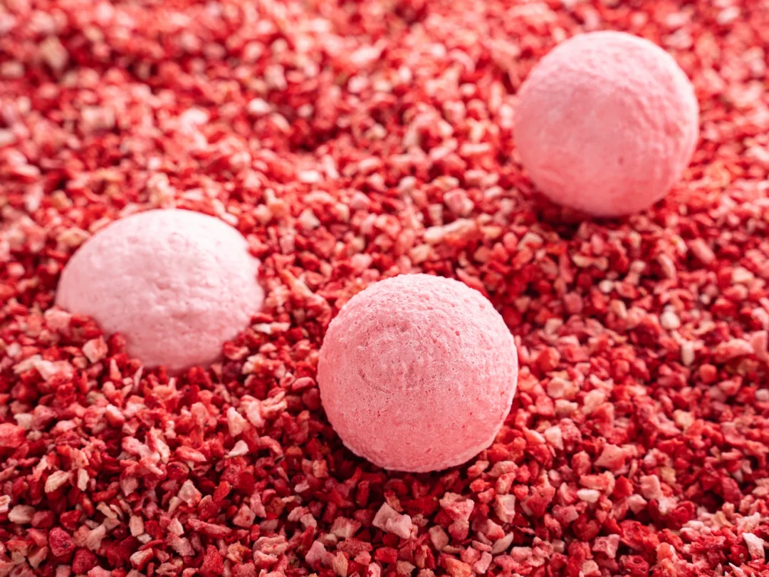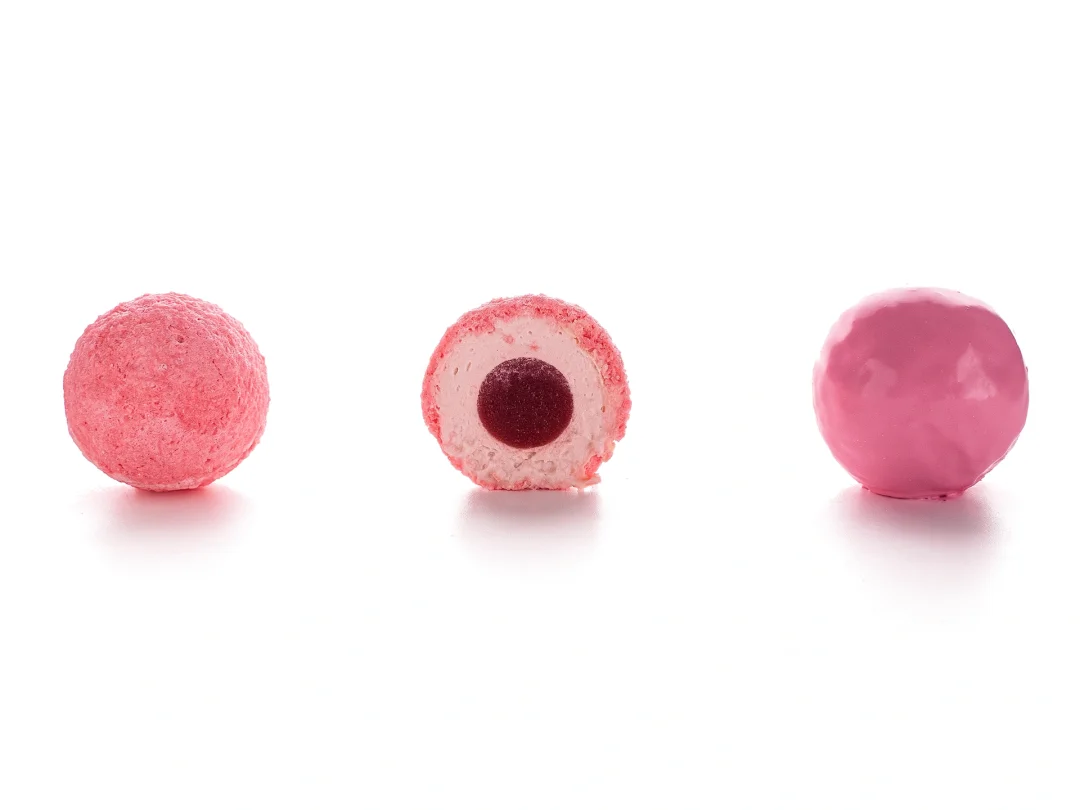 🍓今儿想吃糖了,安排一款入口酥脆的草莓酥心糖,灵感来自于小时候吃过的小糖球,整体由草莓蛋白糖将草莓啫喱与草莓奶油霜包裹成球,低温烘烤的蛋白糖入口酥脆,搭配草莓啫喱的酸甜与草莓奶油霜的醇香,口味超赞的[飞吻R]