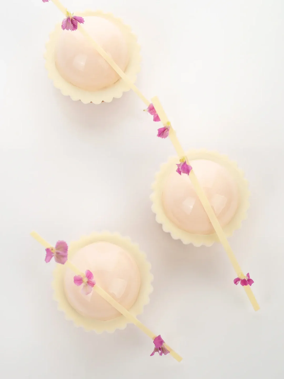 4、组装上花边插件、慕斯和面条插件,可用新鲜花瓣作装饰。