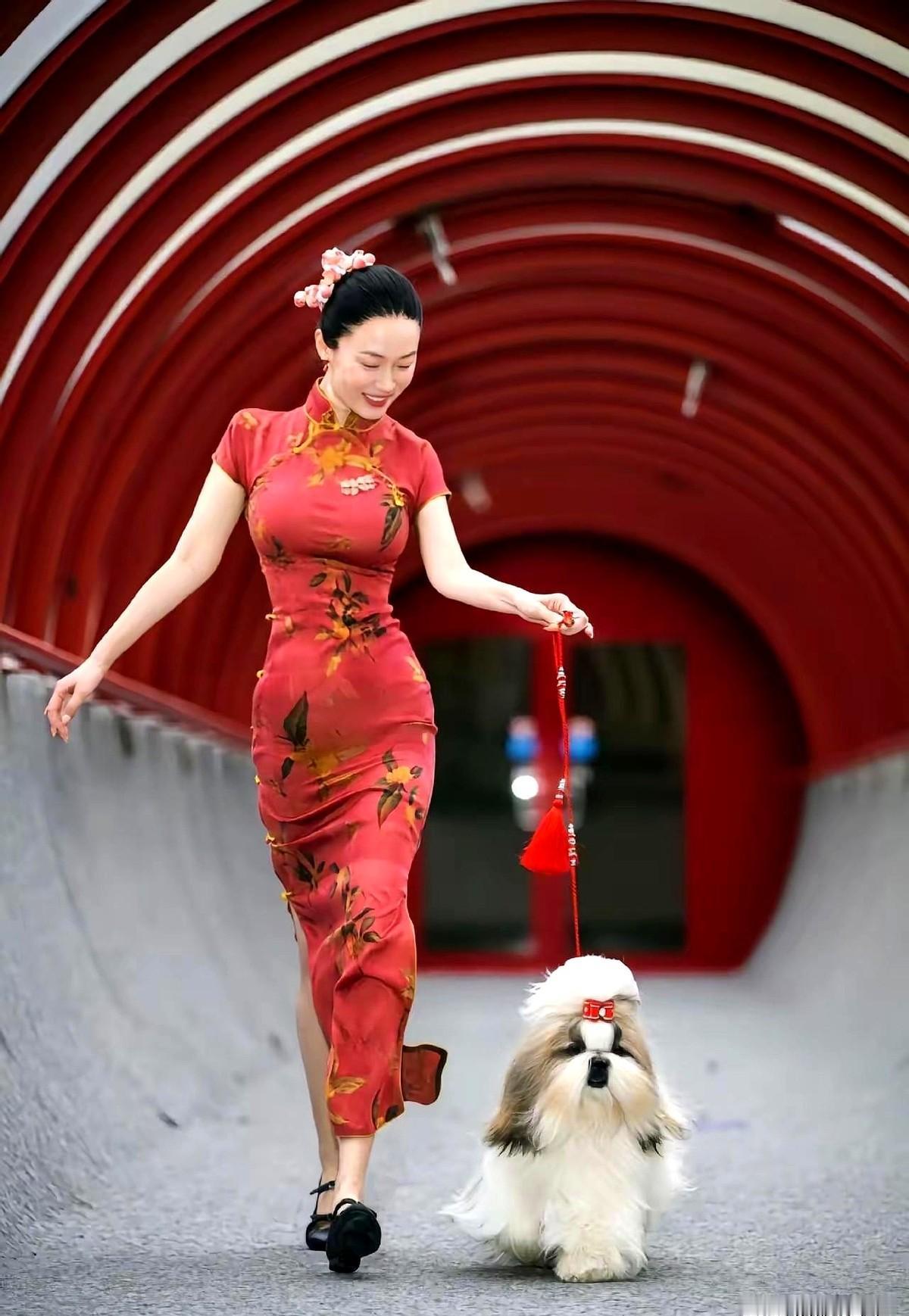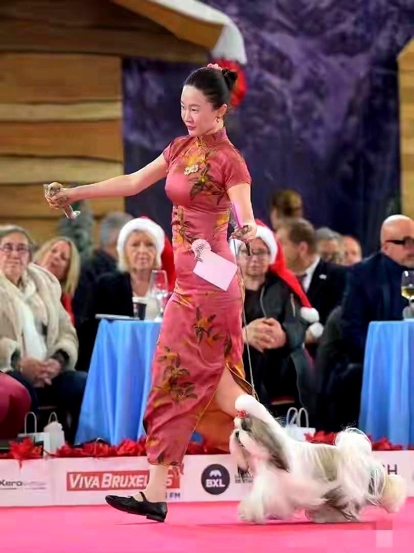 45岁霍思燕穿旗袍夺冠,胖得值! 12月20日,布鲁塞尔犬展,她牵西施犬拿下J