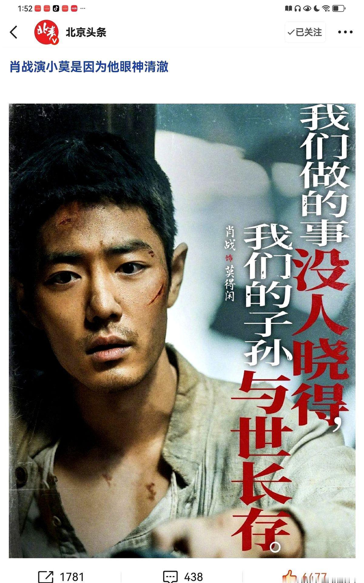 正午阳光这部抗战片,上映不到15小时票房就破亿了。 孔笙和兰晓龙这对王炸组合,这次拍了《得闲谨制》。讲的是鄂西会战背景下,一群普通人被逼急了的故事。 主角莫得闲(肖战饰)是个钳工,带着家人逃难到戈止镇,就想活命。镇上还有些散兵,大家种种地,过得挺安生。结果一队日本兵来了,安稳日子到头了。 这片子好就好在真实。没有英雄口号,全是怕死的小人物。肖战演的莫得闲,一开始窝囊得想笑,护家时红着眼那股狠劲,那股劲儿真上头。彭昱畅的炮兵队长吊儿郎当,真干起来却一点不含糊。 兰晓龙的黑色幽默太绝了,满嘴南京话的碎碎念,吵架都带感。观众在电影院里笑得前仰后合,笑着笑着又哭了。就是真实。 片名“得闲谨制”源自工匠精神,意思是普通人也有自己的坚守。大部队靠不住,小人物自己拿起锤子镰刀保卫家园,这种荒诞又热血的感觉,拍得太到位了。 这片子后劲儿不小,看完心里热乎乎又沉甸甸的,讲的就是普通人的骨气。