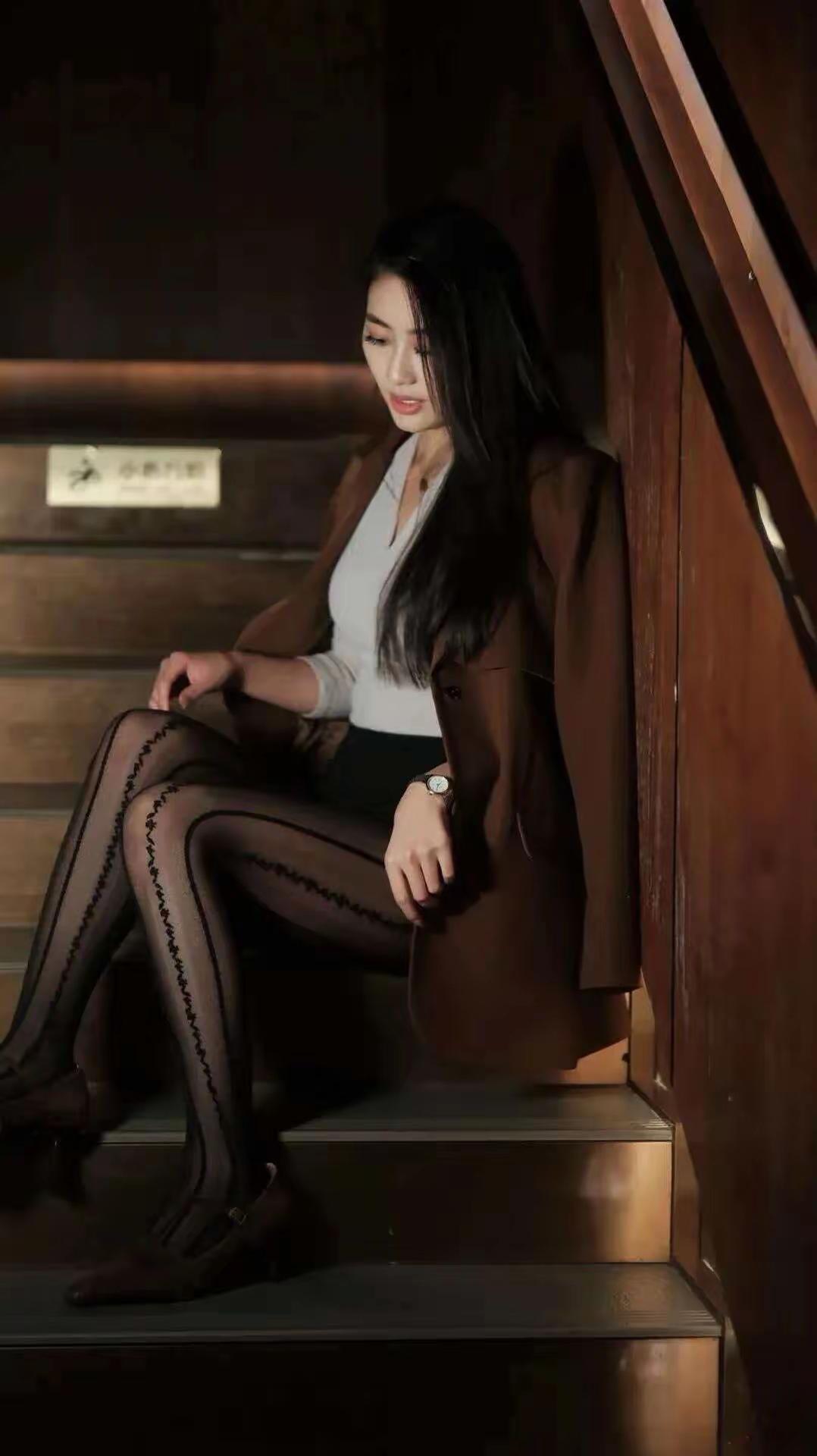 可以说, 这张照片把女性的美淋漓尽致的展现了出来: 波浪秀发半掩容颜! 黑色长裙