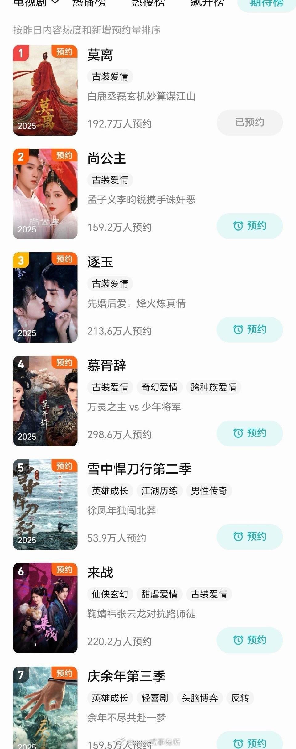 白鹿丞磊《莫离》腾讯视频期待榜登顶星光大赏后唯一破万的待播剧唯一连续两天破万