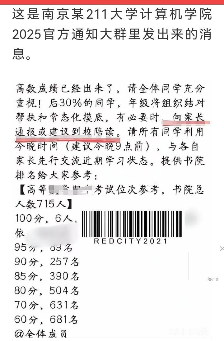 救命啊!听说南理工高数后30%的同学,学院要直接召唤家长——不是打电话那种,是可能建议家长来陪读(详见附图)! 看到这里,我差点以为我穿越回了小学四年级。 想象一下这个画面:二十岁的大学生,早上被妈妈喊着起床背拉格朗日中值定理,爸爸坐在旁边监督做泰勒展开。家长群里每天更新:“今天我家孩子高数作业错了三道!”“老师,这次月考排名出了吗?我家孩子还在危险区吗?” 不是,咱都大学了喂!挂科该补考补考,该重修重修,怎么还带“请家长”这一出的?难道以后招聘单位看简历还得附上一句:“该生高数成绩稳定在前70%,从未触发家长陪读机制”? 这政策总让人觉得哪里不对劲——它仿佛在说:大学生依然是不能为自己负责的巨型儿童,而大学是个需要家长驻场监督的高中强化班。说好的独立人格呢?说好的自我管理呢? 陪读?下次是不是还得安排家长坐在教室后排记笔记啊?真的,有些教育思路,和微积分比,恐怕还是后者更简单点。高数考多少分 高数总结 高数强化攻略
