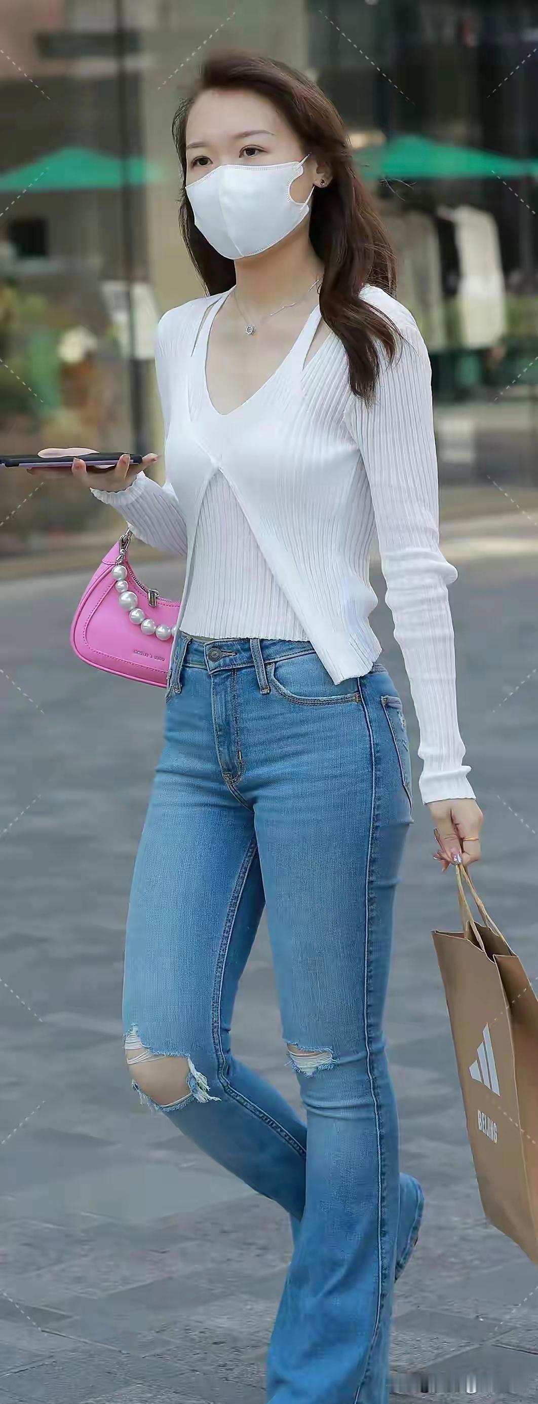 白色针织衫+牛仔裤,配粉色手袋,真是时尚又出挑的搭配!白针织选“留一指”版型,成分含8%弹性纤维,活动自在还藏副乳。牛仔裤选高腰微喇,开口比传统喇叭小3 - 5cm,显腿长。再系条2 - 3cm宽的米色腰带,勒出腰窝。 肉肉女生穿紧身牛仔裤配白针织,提臀显瘦又性感。像吴千语穿大针织元素的白衫搭牛仔裤,慵懒又清爽。粉色手袋提亮整体,让你轻松出街,成为焦点!