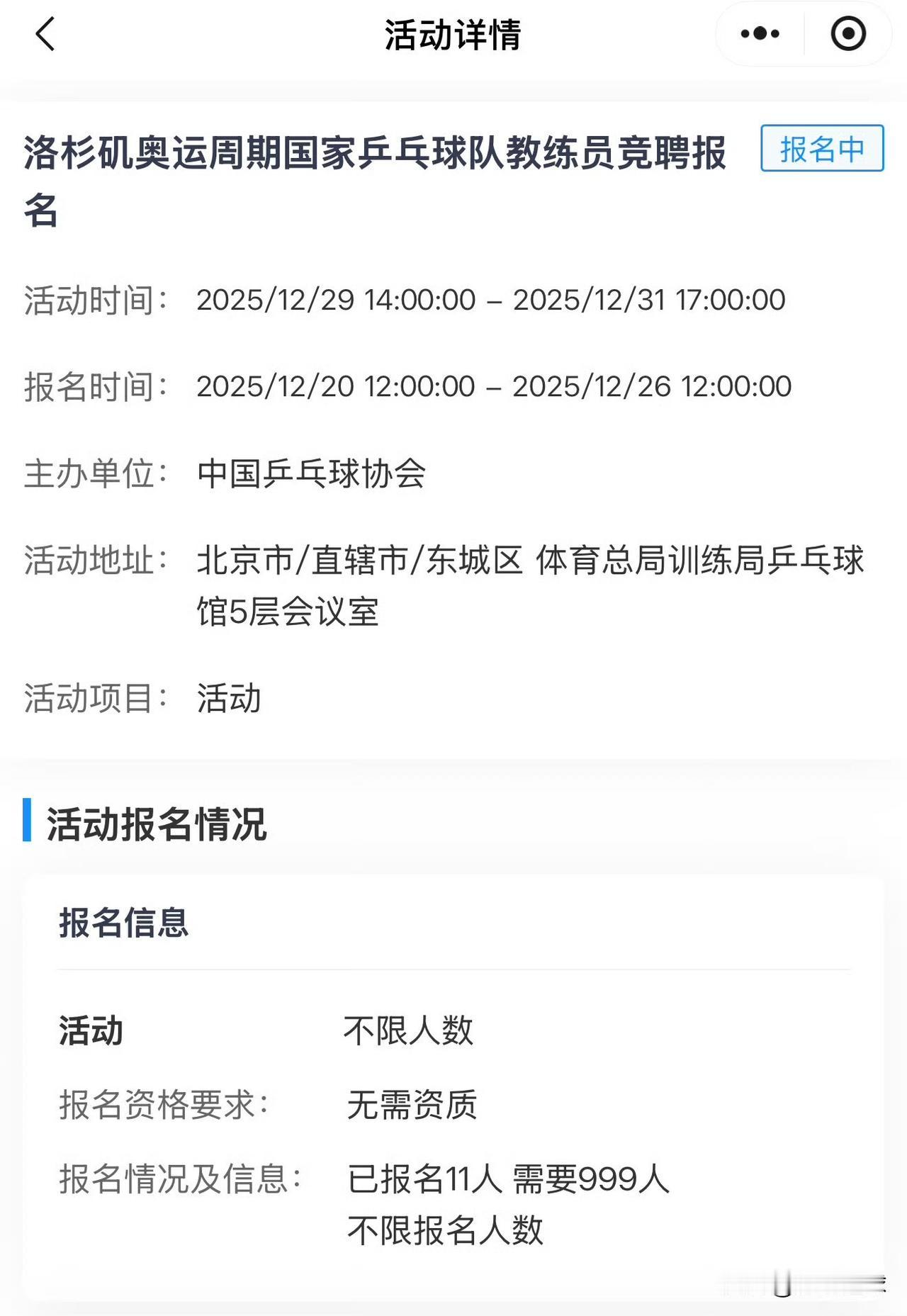 关于教练竞聘:“别在意”报名人数了 很多人看到说,开始报名这么多天了,只有10个人左右报名。 其实教练竞聘,能竞聘的也就那么些人,业内人士其实心里都有数,不相关人士,你报名了也没用,是不是? 所以呢,这种竞聘是针对性很强的那种,大家明白这个意思吗?