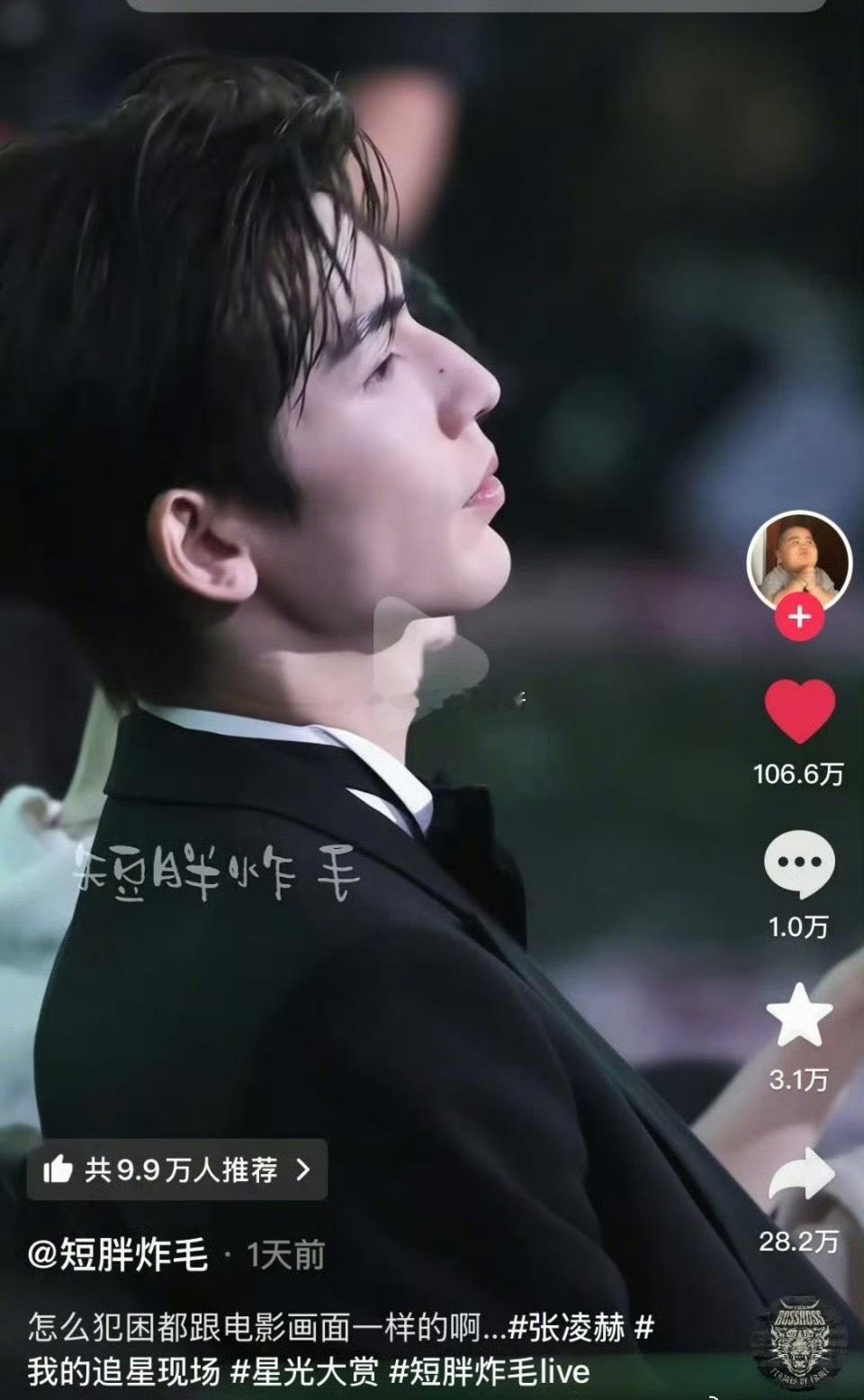 张凌赫星光大赏这个视频破百万赞了,之前尖叫之夜视频也破百万,双大型活动双百万,不