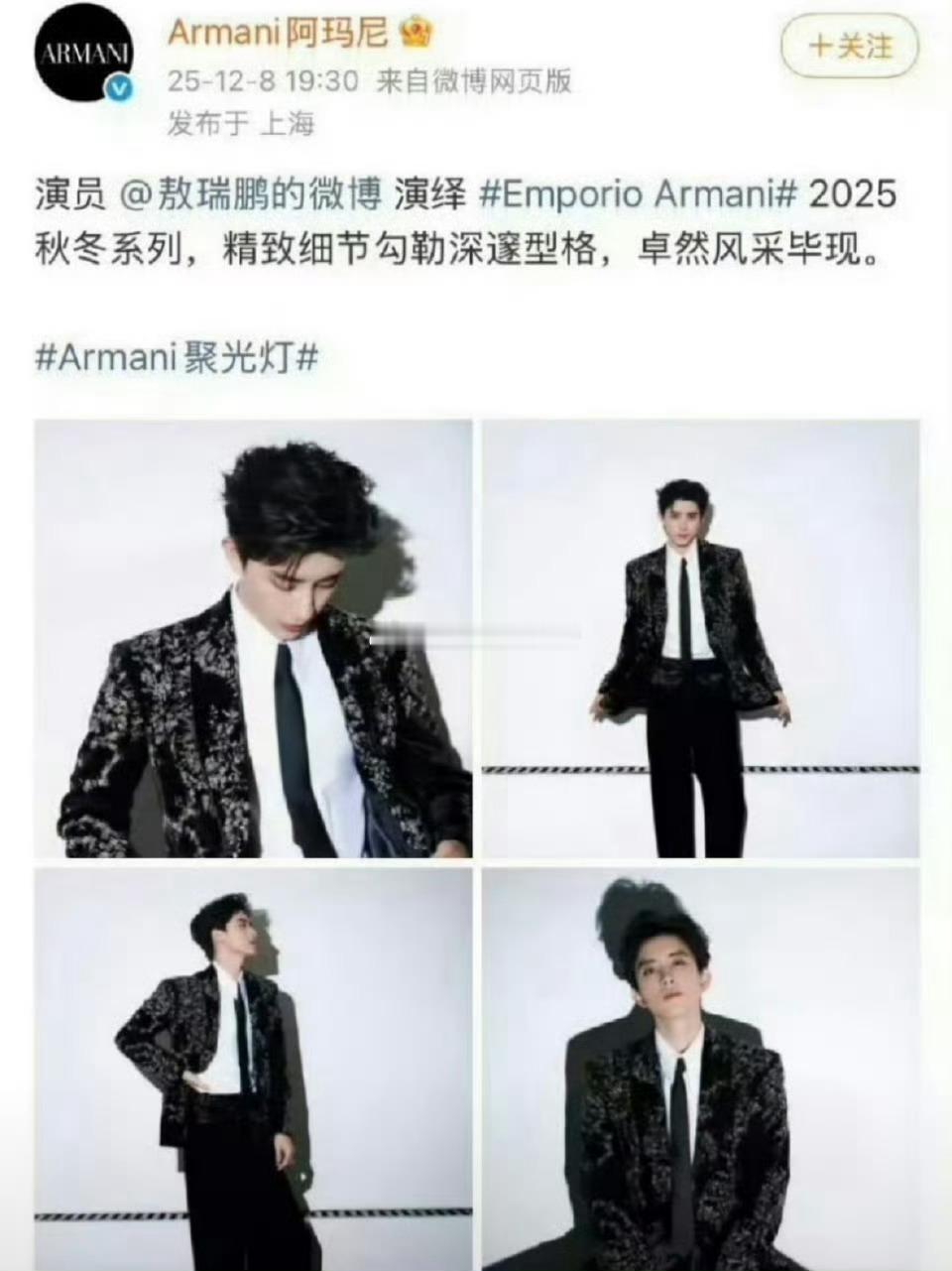 这月二大奢牌Gucci和阿玛尼都认领敖瑞鹏,老古还给敖鹏安排下线活动后立马又安排直播,奢牌新宠啊