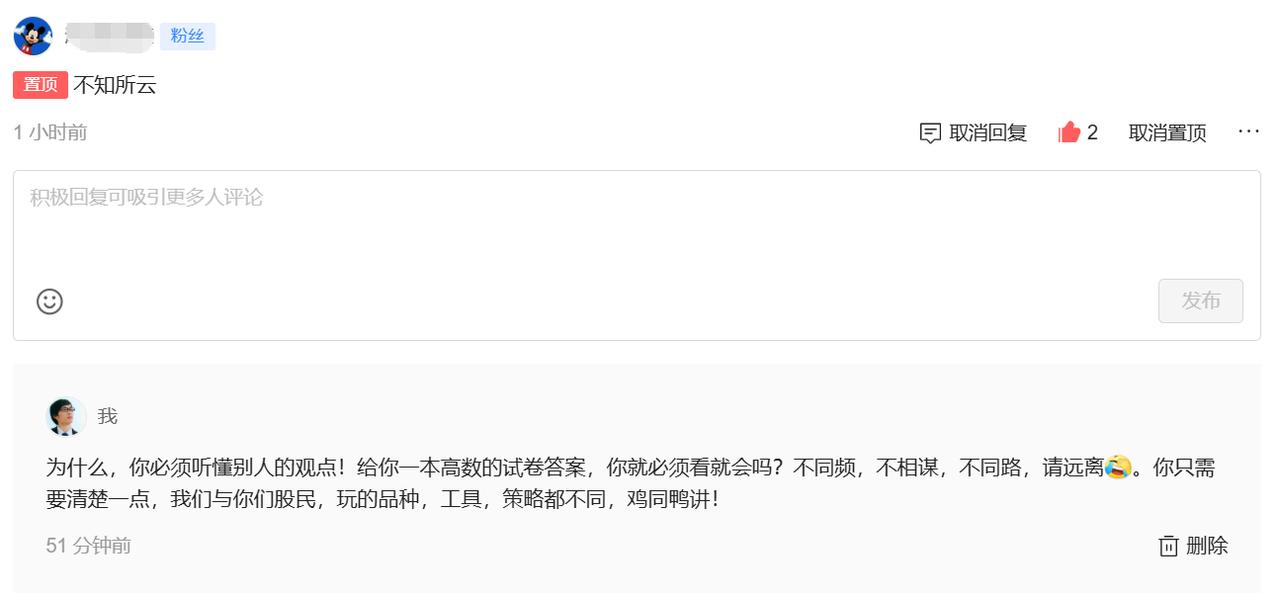 人呐,永远不要胡说…… 1、既然你不懂ETF,为什么还要自我理解呢? 人,习惯性的反驳,为什么你必须听懂别人的观点。给你一本高数的试卷答案,你就必须看就会吗?不同频,不相谋,不同路,请远离。你只需要清楚一点,我们基民与你们股民玩的品种,工具,策略都不同,鸡同鸭讲。 用段永平的话讲,我用15年才懂的东西,你听几句话就懂了,那不是我太笨了。我读到大学本科毕业才学会微积分,难道我给你讲几句,你就懂微积分了吗? 2、玩ETF是容错率高的策略,用专业的话讲是桶里射鱼。 大家玩股票是池子里面钓鱼,谁也不知道能不能钓到鱼,如果你喜欢一个行业,你买这个行业的股票可能买到弱势股,里面几十家,几百家。你如果只买行业ETF,那就是肯定买对了。 如果要更简单,你看好A股,那么你买入大盘指数,不用从5000多家股票里面挑了,直接都有。相当于会吃饭就行了,不需要会自己做饭,亲自下厨,谁知道哪个股票会涨,精心挑选食材做饭。 3、不要胡说,对你不懂的东西少发表观点。 小凡写了几年, 什么时候看到写过K线分析、指标分析,游资、龙虎榜,热点、题材这些。我不会,不会的东西就不要误导别人。 我只是写指数的玩法,如果你同频,肯定是收益满满。这件事情很正常,我们的粉丝都是买的宽基为主,就算买错了也是几十点涨幅,三大指数无非就是创业板,上证,深证。 所以,不要乱说,我会抑郁的。天天鸡同鸭讲,做指数真的很简单,不过玩股票确实难,你可以追求跑赢行业指数,跑赢大盘指数,但是大多数人跑不赢!