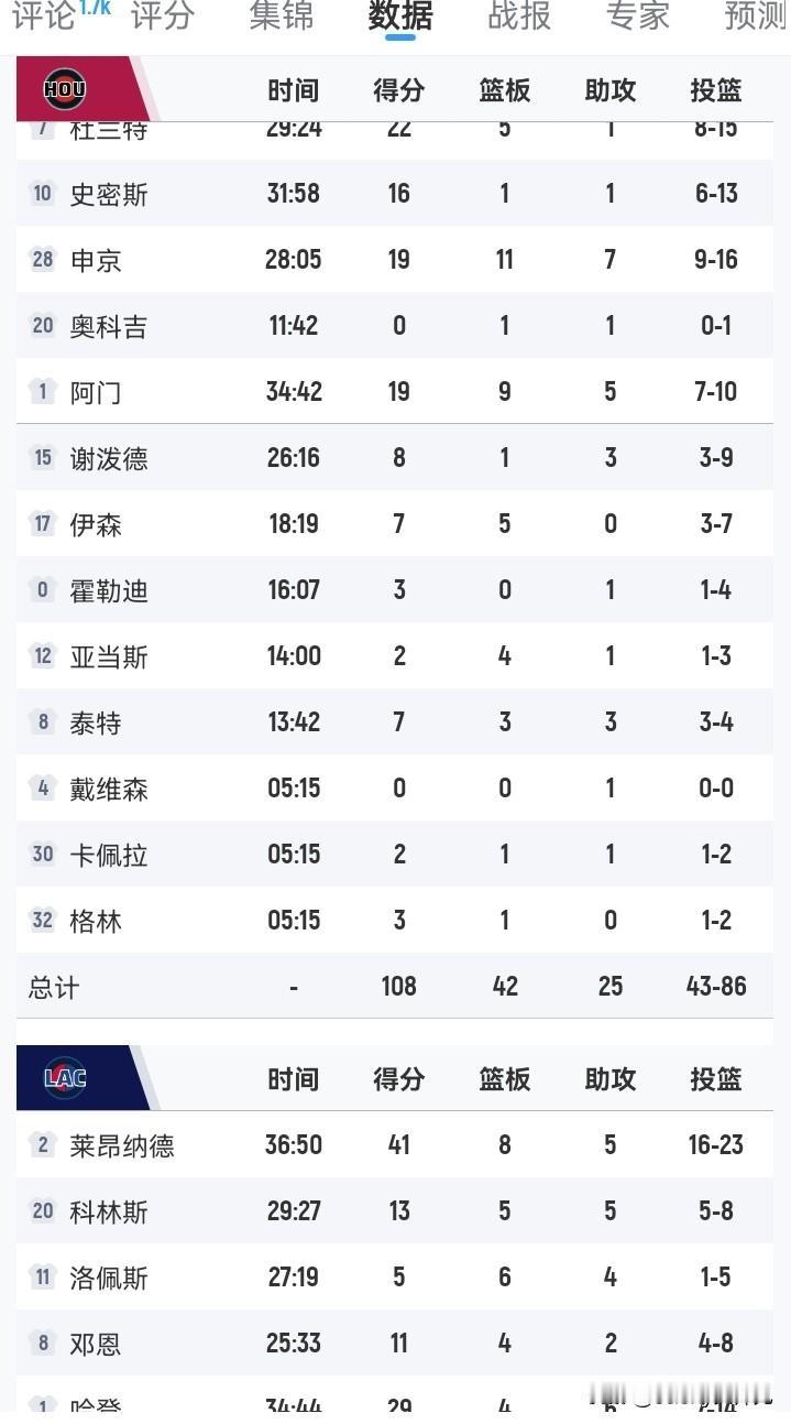 火箭又输球了,莱昂纳德 开启进攻模式,命中率超7成,三节28分,全场41分,卡登合力砍70分! 本场可以看出,只要申京拿高分,或者说出手多,火箭队就要输。 三节结束时申京比杜兰特出手多一次,到了16次。面对小卡的不讲理三分,乌度卡气的直接暂停。 今天雷霆、湖人和掘金都输球了,火箭也不甘示弱。 难道问题出在祖巴茨身上?他缺阵这两场快船都赢了。