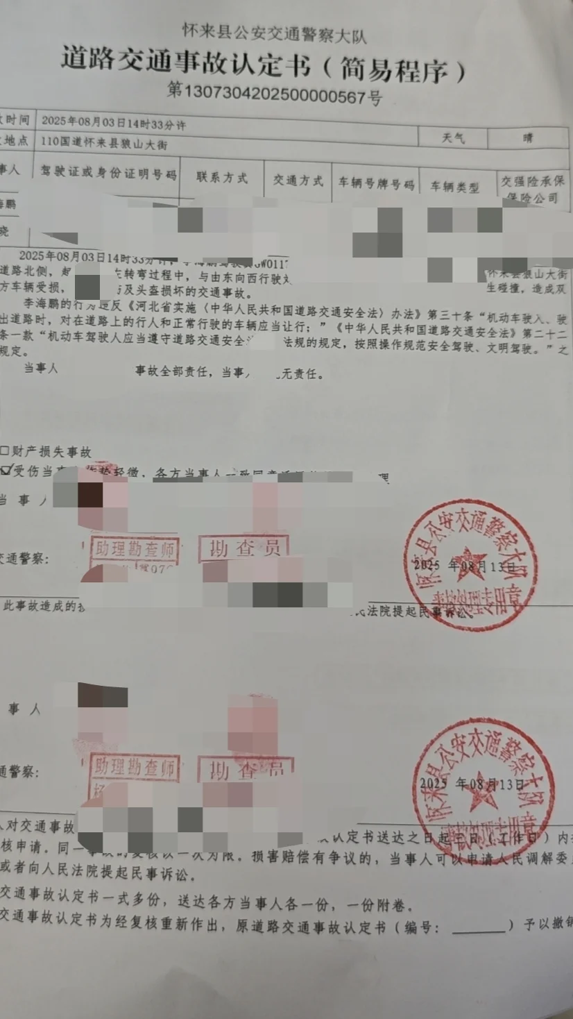 其实责任早就定好了,就等签字了。我手还写不了字……朋友代签的,我摁手印。