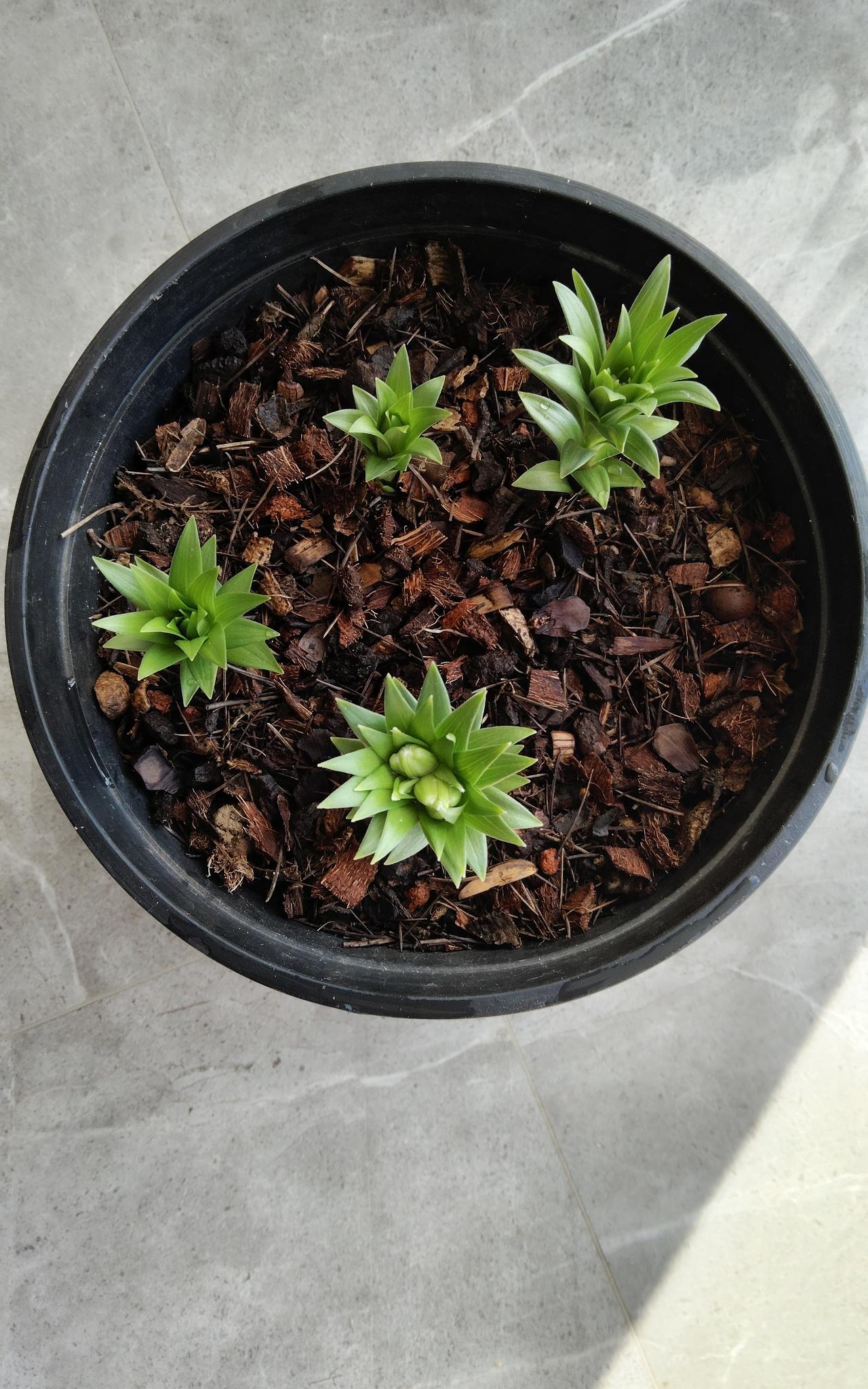 请看我的百合出花苞了 我是11月22日种的百合,到今天是一个多月的时间,从百合上面蕊里已经长出了花苞,这就是我的辛勤付出有了成果,值得高兴。这也不仅使我想起了上小学时学的一首诗: 锄禾日当午,汗滴和下土。 谁知盘中餐,粒粒皆辛苦。 哈哈哈,不错不错。