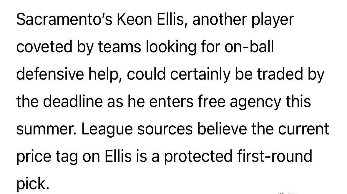 我跟你讲,现在这联盟的总经理,是不是都疯了? 张口就要一个首轮签。 就为了一个场均得5分、投篮命中率不到四成的小后卫。 说的是国王队的埃利斯。 我承认,这哥们儿防守是真玩命,像块牛皮糖,贴上谁谁难受。能量条永远是满的。 但问题是,他的价值也就到这儿了。 一个功能极其单一的防守工兵,受限于身高,你也就能让他去缠一缠对面的后卫。 最逗的是什么? 他明年夏天合同就到期了。 一个眼看就要免费走人,恢复自由身的球员,你现在想用他换一个首轮签? 这不就是拿着一张快要过期的电影票,非要去跟人换一张演唱会门票吗? 你当别的球队经理都是冤大头啊? 人家的算盘打得噼里啪啦响:我凭什么要花一个首轮的代价,去“租”你半个赛季?等几个月,我直接去自由市场上签他,一分钱都不用花。 说白了,国王队这就是典型的“敝帚自珍”,把自家即将一文不值的东西,当成了稀世珍宝。 想在最后时刻,赌一个冲冠球队脑子发热,病急乱投医。 醒醒吧。 再这么端着,捂在手里,明年夏天人直接走掉,你连个次轮签都捞不着。 到时候就不是你要价多少了,是人家给你留下一句“拜拜”,挥一挥衣袖,不带走一片云彩。
