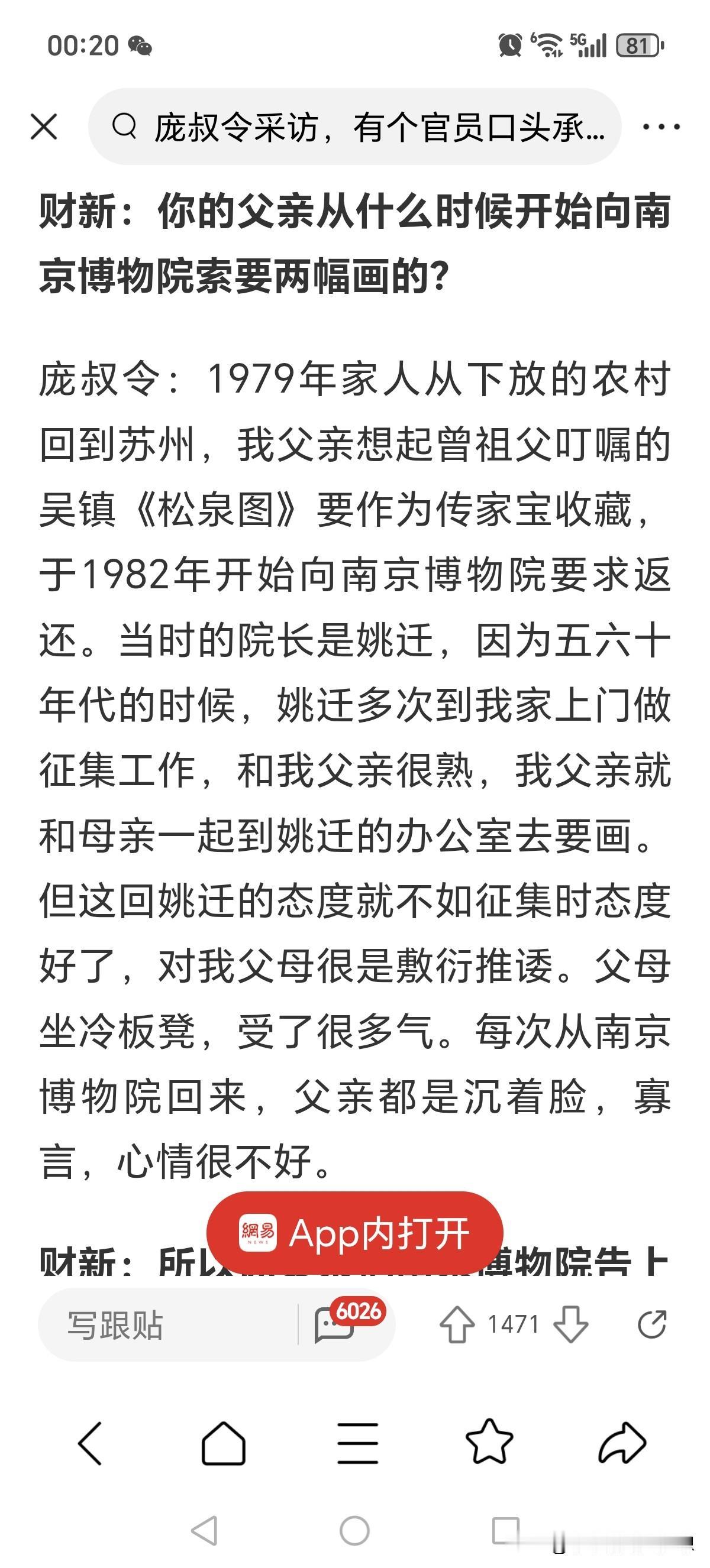 这是《财新》近日报道的对庞莱臣后人庞叔令的采访,看得我浑身发抖,好听说是上供,实际上这跟土匪有什么区别!? 马伯庸的小说《古董局中局》对此有深刻描写,果然现实比小说更荒诞。 其中的描述,不可说、不能说、但我们都知道了、都明白了!