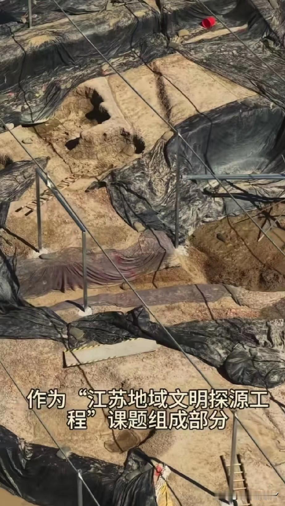 无锡挖出6000年古城!长江下游城建史提前千年! 备受全国关注的考古重大发现来了!无锡锡山区斗山遗址,意外发现距今6000年的马家浜文化城址。 消息一出,30多位专家连夜赶赴现场。这一发现,直接将长江下游城建史向前推进了千年! 2023年新锡快速路基建前期考古时,这片北靠长江、南邻太湖的台地进入了考古人员的视野。 2024年7月,江苏省文物考古研究院牵头开展抢救性发掘工作,在1.6万平方米发掘区域内,地下3米处的古城遗迹逐渐展露真容。 借助无人机激光雷达、相控阵声波勘探等先进科技手段,遗址的全貌得以清晰呈现。 2025年9月,专家论证会确定了城址属性。12月13日近30位专家亲临现场复核,最终确定了这一令人震撼的成果。 这座总面积达25万平方米的古城,坐拥“两墙三壕”顶级防御体系,内城面积7.5万平方米、城外推测面积12.5万平方米,其规划之精妙,在同时期堪称一绝。 目前,已发掘墓葬194座、房址13处,出土陶器、石器、玉器等文物近1800件。陶片上的先民留下的指纹、玉器精湛的穿孔工艺,无不展现出史前文明的卓越智慧。 更令人兴奋的是,这座古城比良渚城早了千年,填补了江南史前文化序列的关键空白,有力证明6000年前的江南已步入文明阶段! 长江文明与黄河文明同样源远流长、灿烂辉煌。无锡的这一考古发现,让国人倍感自豪 ! 无锡 斗山遗址考古现场