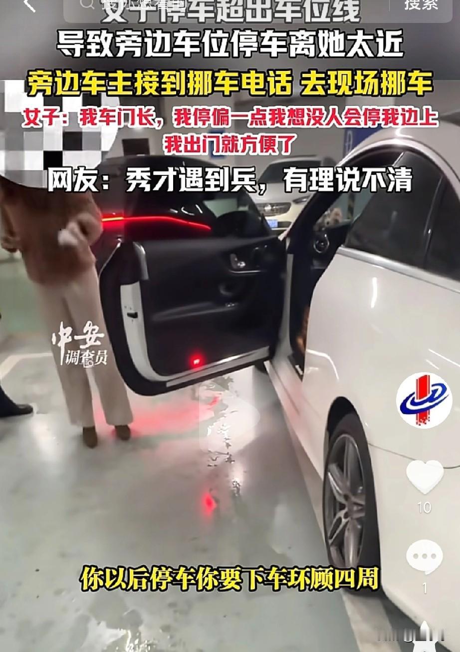 秀才遇到兵,有理说不清! 女子停车超出停车线,还指责是别人得错,缘由竟是,车门太
