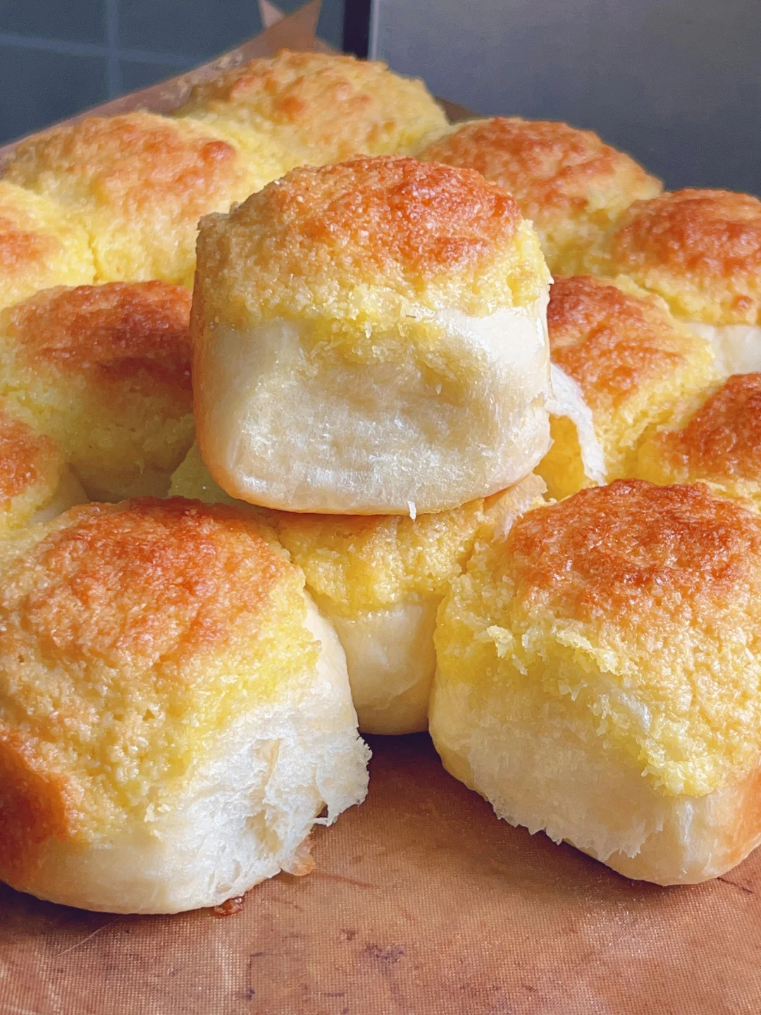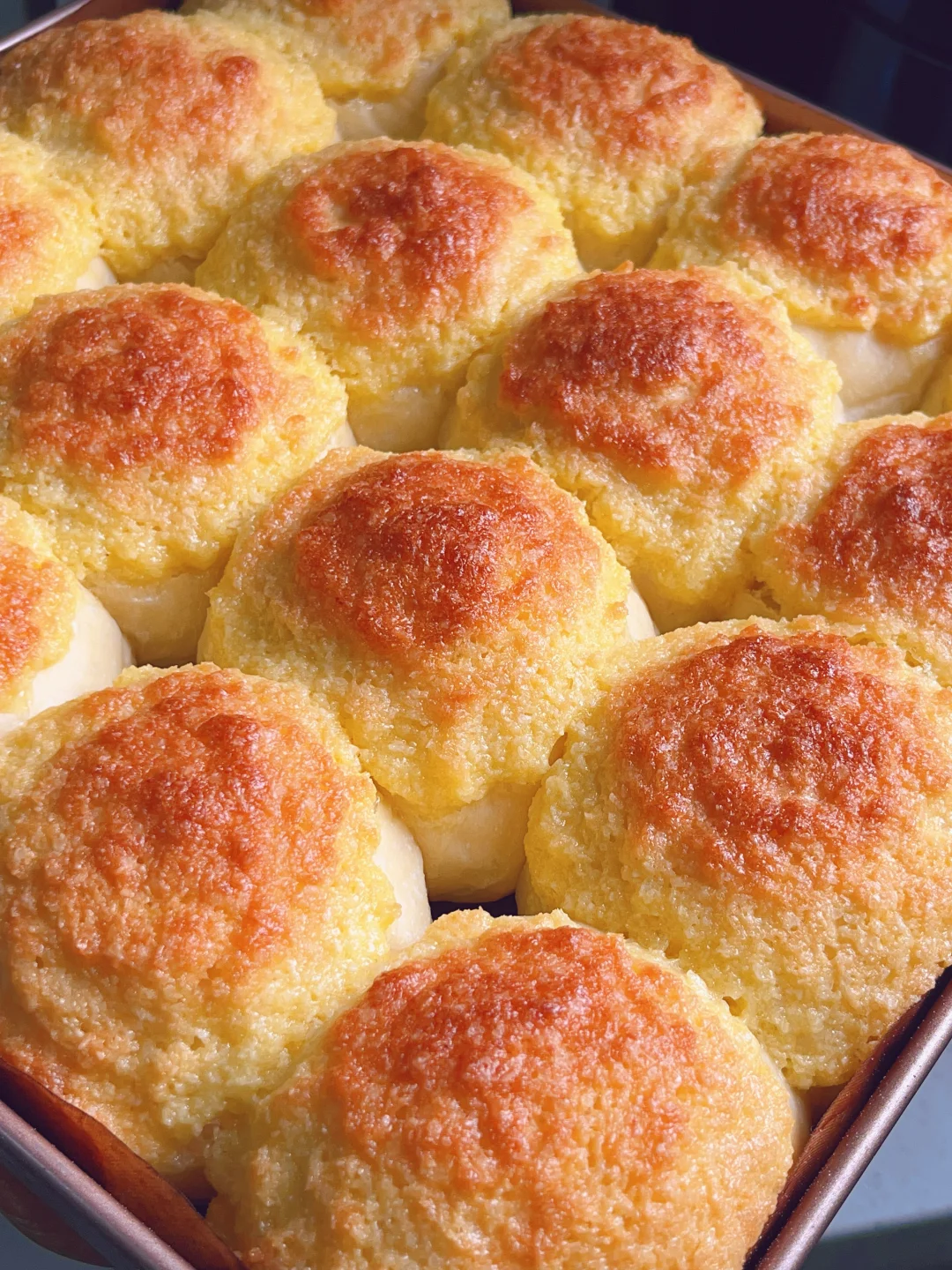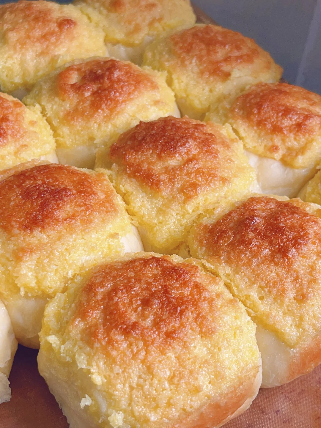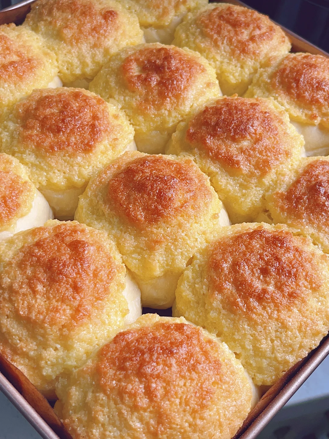 3⃣️发酵好的面团轻拍排气,均分成16份,揉成小圆球放入烤盘中醒发2倍大