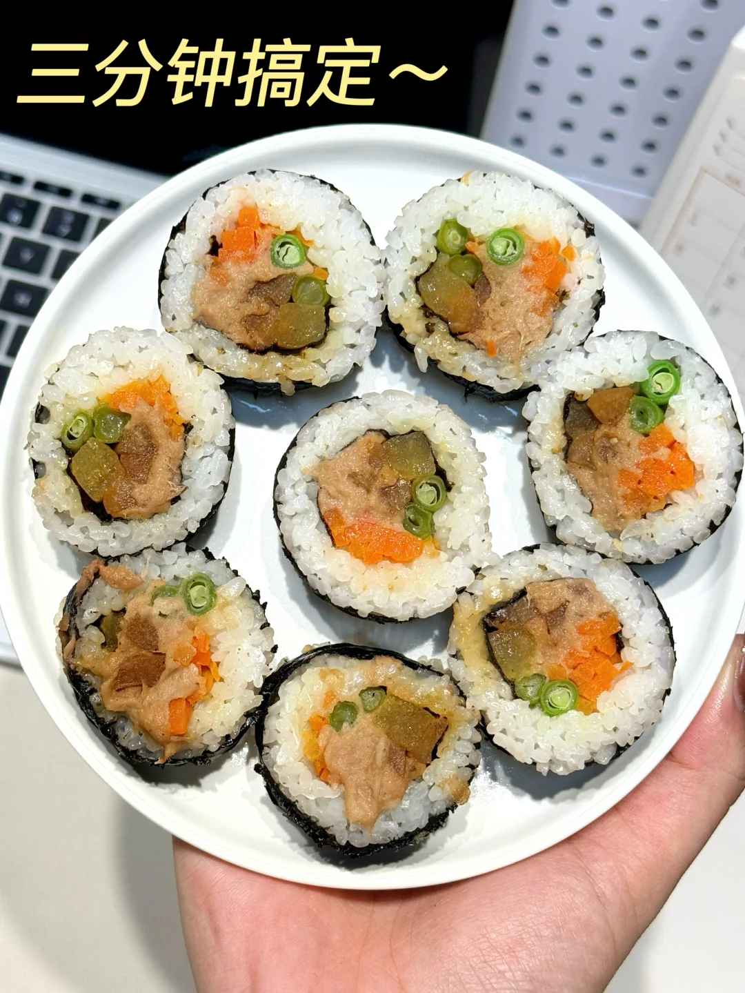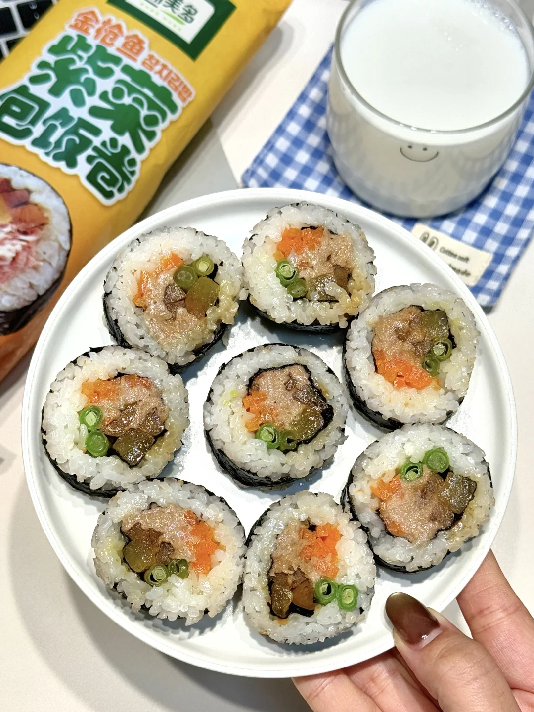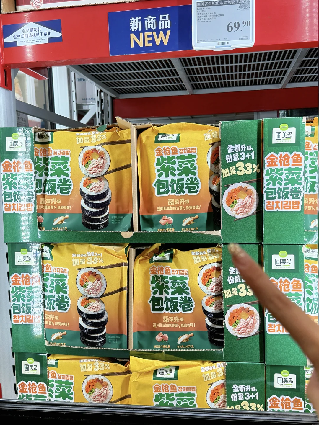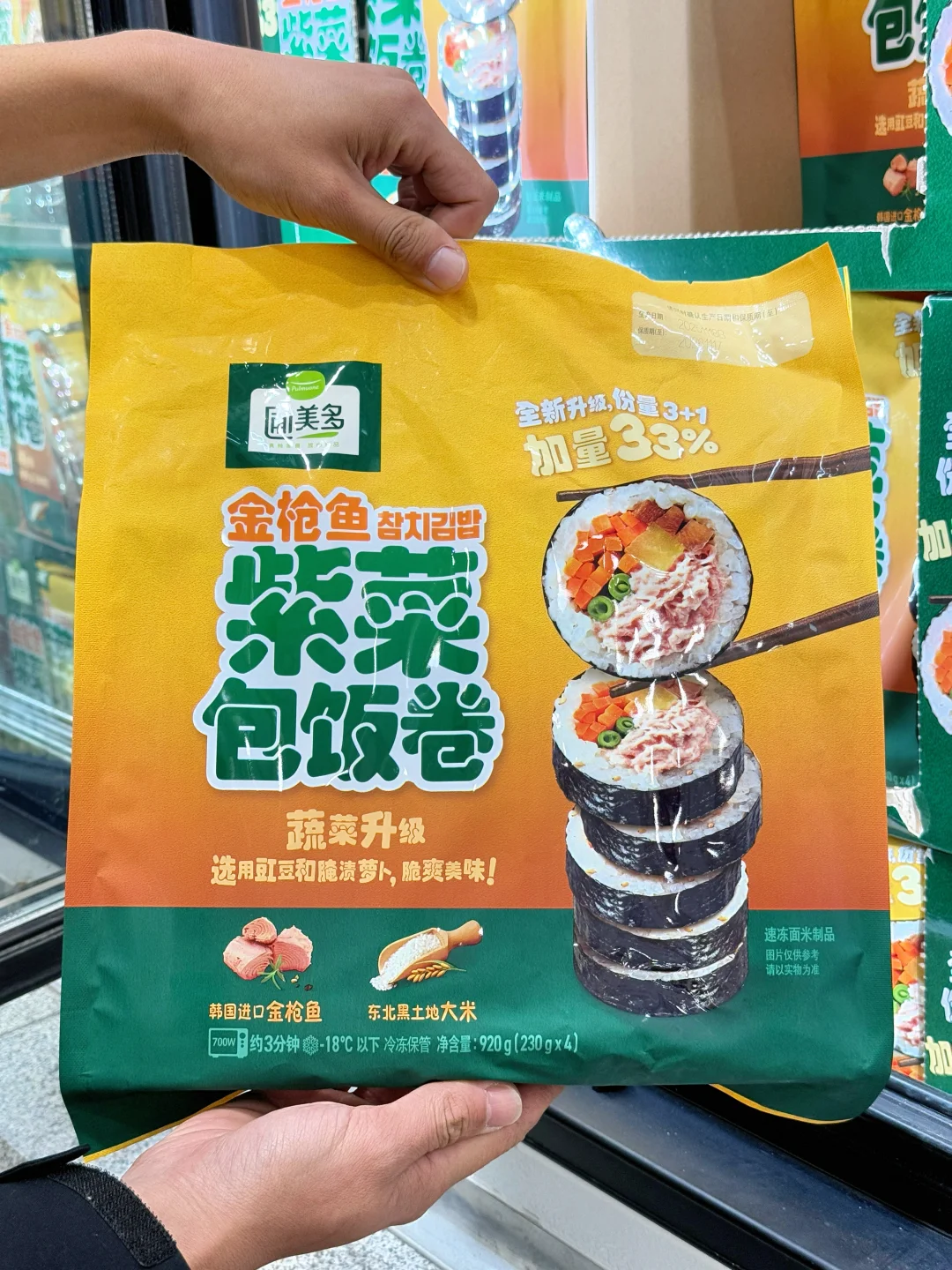 逛山姆发现了回购N次的圃美多紫菜包饭升级加量了!! 比以前多了整整一条!💰还和之前一样 本早八党狂喜…… 一拆包装就闻到了金枪鱼混合蛋黄酱的香气! 紫菜还是薄脆薄脆的,米饭软糯但粒粒分明一点儿都不黏糊~ 豇豆替换了蒜苔,加上牛蒡、萝卜和胡萝卜这些 口感更清爽了 最戳我的是,微波3分钟搞定 早上出门前热一条,配上牛奶或咖啡 真的嘎嘎方便,味道完全不输韩料店! 早八人和懒人党,山姆看到一定要多拿点!