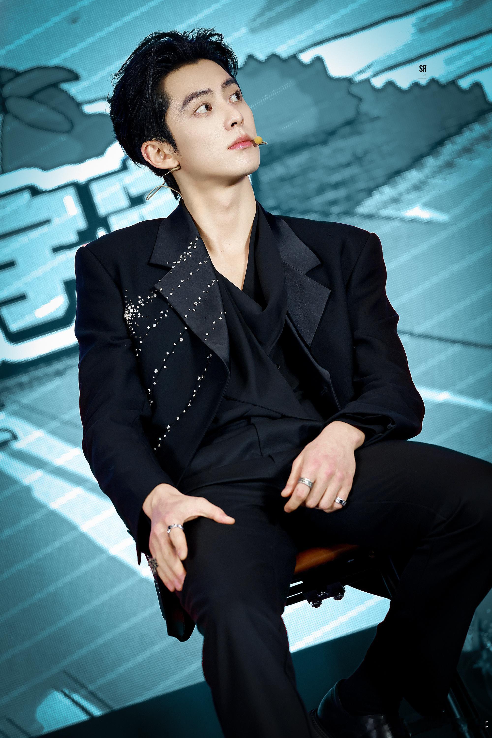 王鹤棣《宇宙闪烁请注意》发布会饭拍,今天是大背头总裁