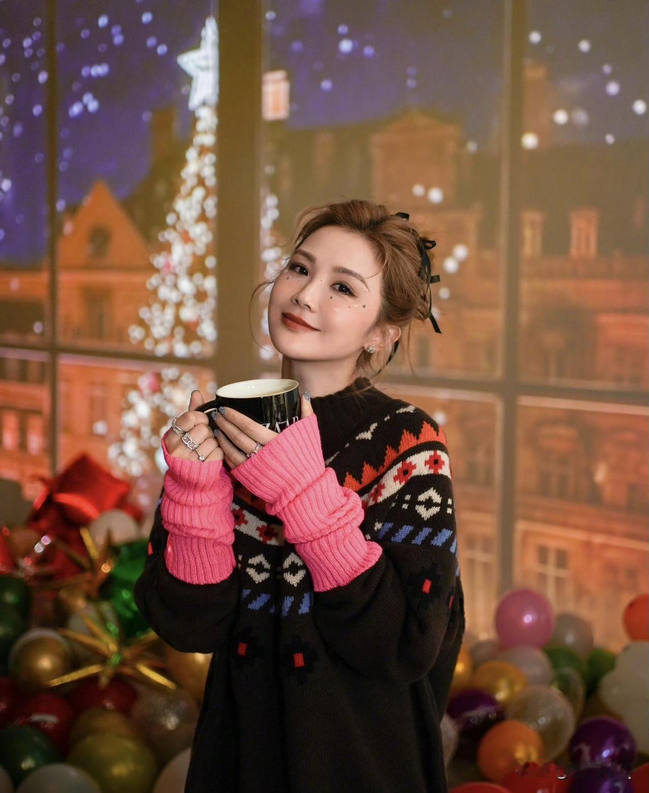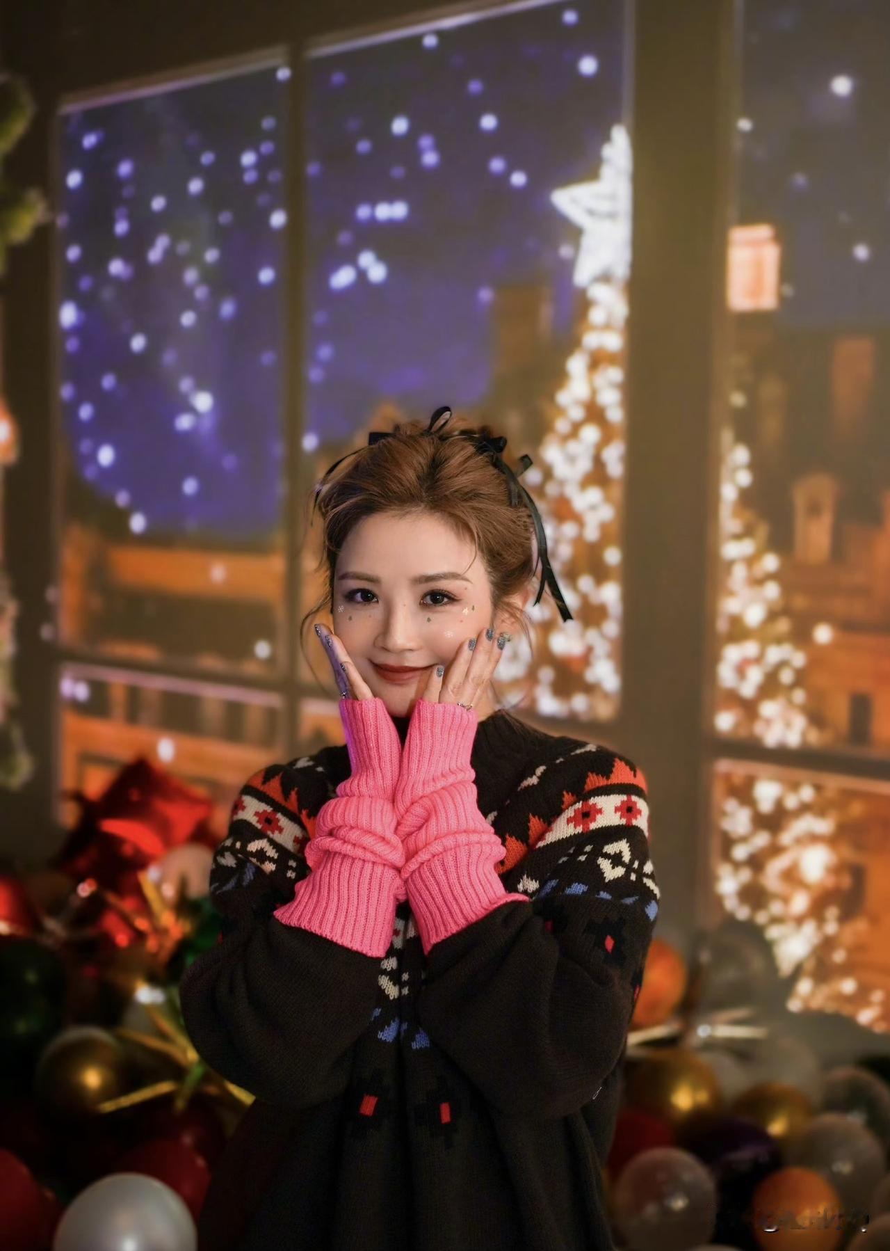 阿sa蔡卓妍过圣诞节,画了一个美美的妆,脸嫩得像少女,但手部些许粗糙了些,还是暴露年纪了。