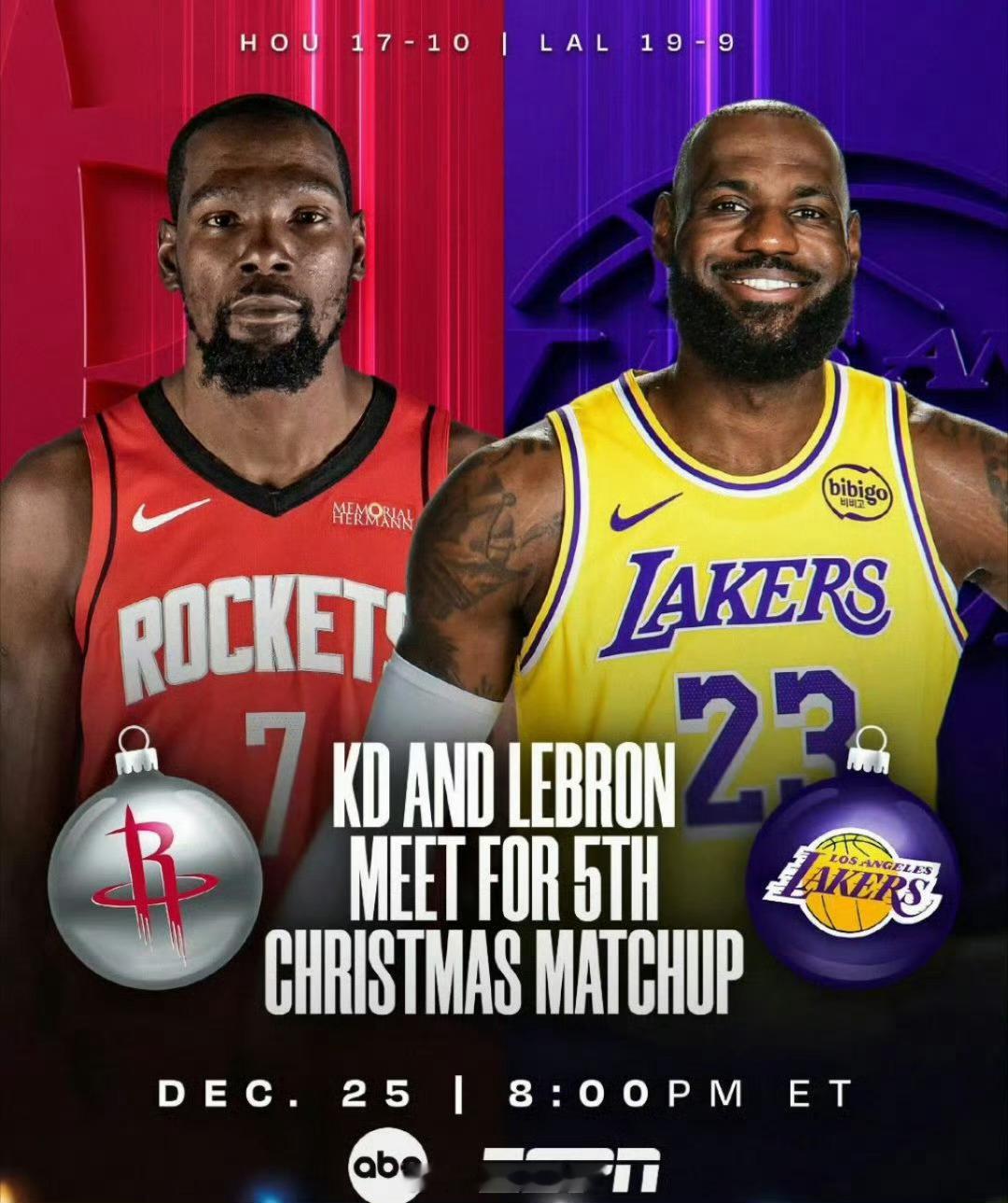 詹杜第44次对决明日NBA圣诞大战,火箭将迎战湖人!这也是詹姆斯杜兰特第44次对决!
