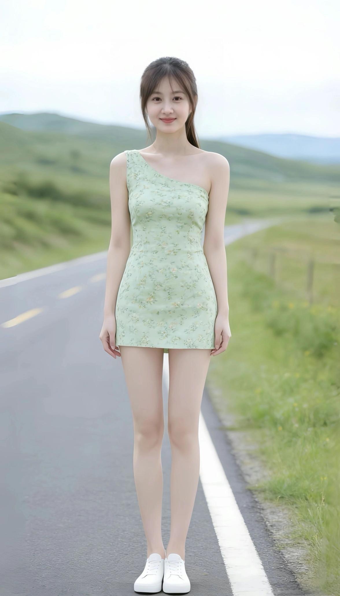 春意盎然穿搭,绿群光腿小白鞋,美美穿搭治愈系少女写真怎么拍 分享唯美的美照 青春绿穿搭写真 紫色运动鞋穿搭 绿色高跟鞋穿搭 蓝色鞋子穿搭 裸粉色平底鞋 绿色鞋子搭配 绿靴子女款