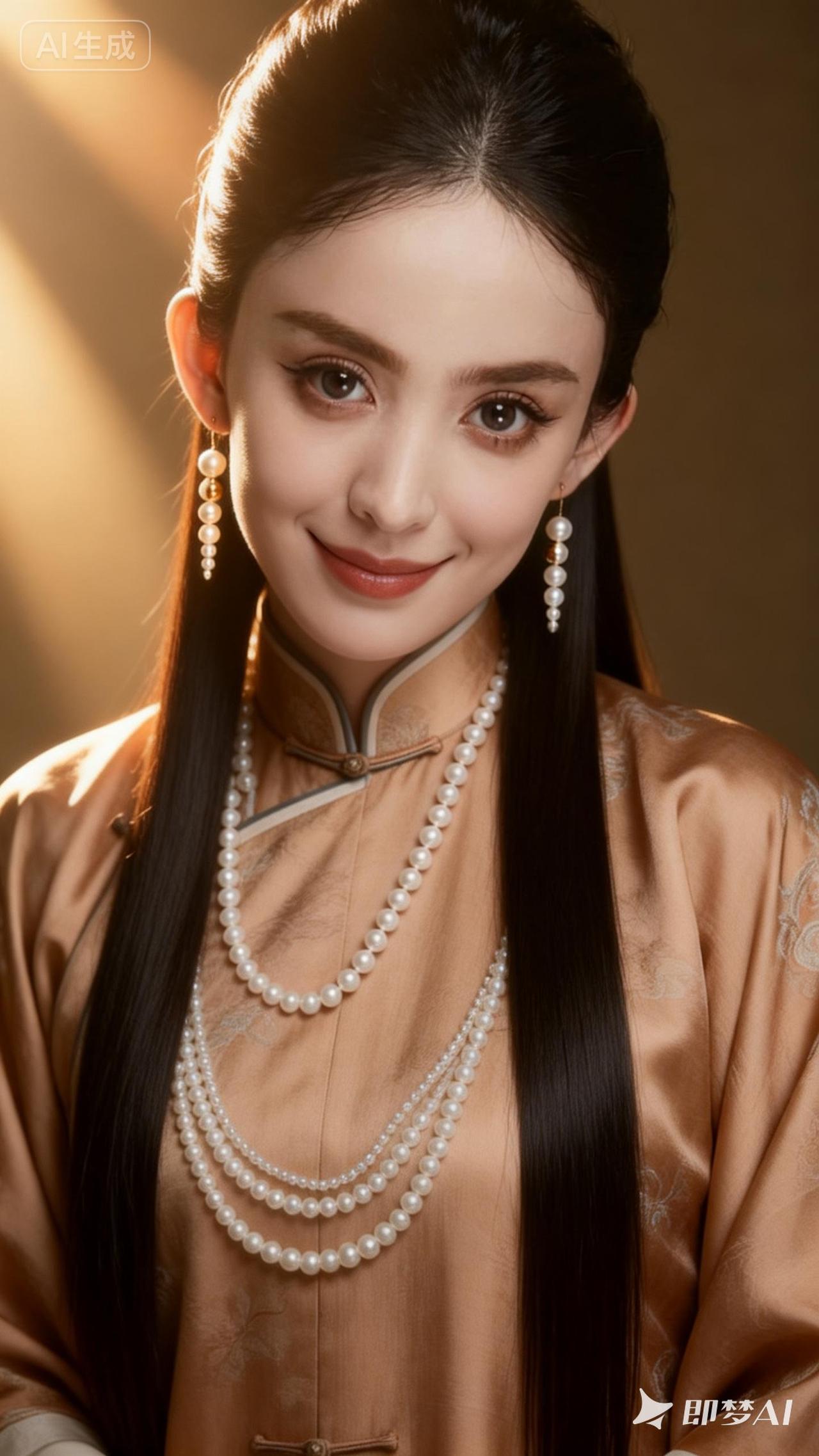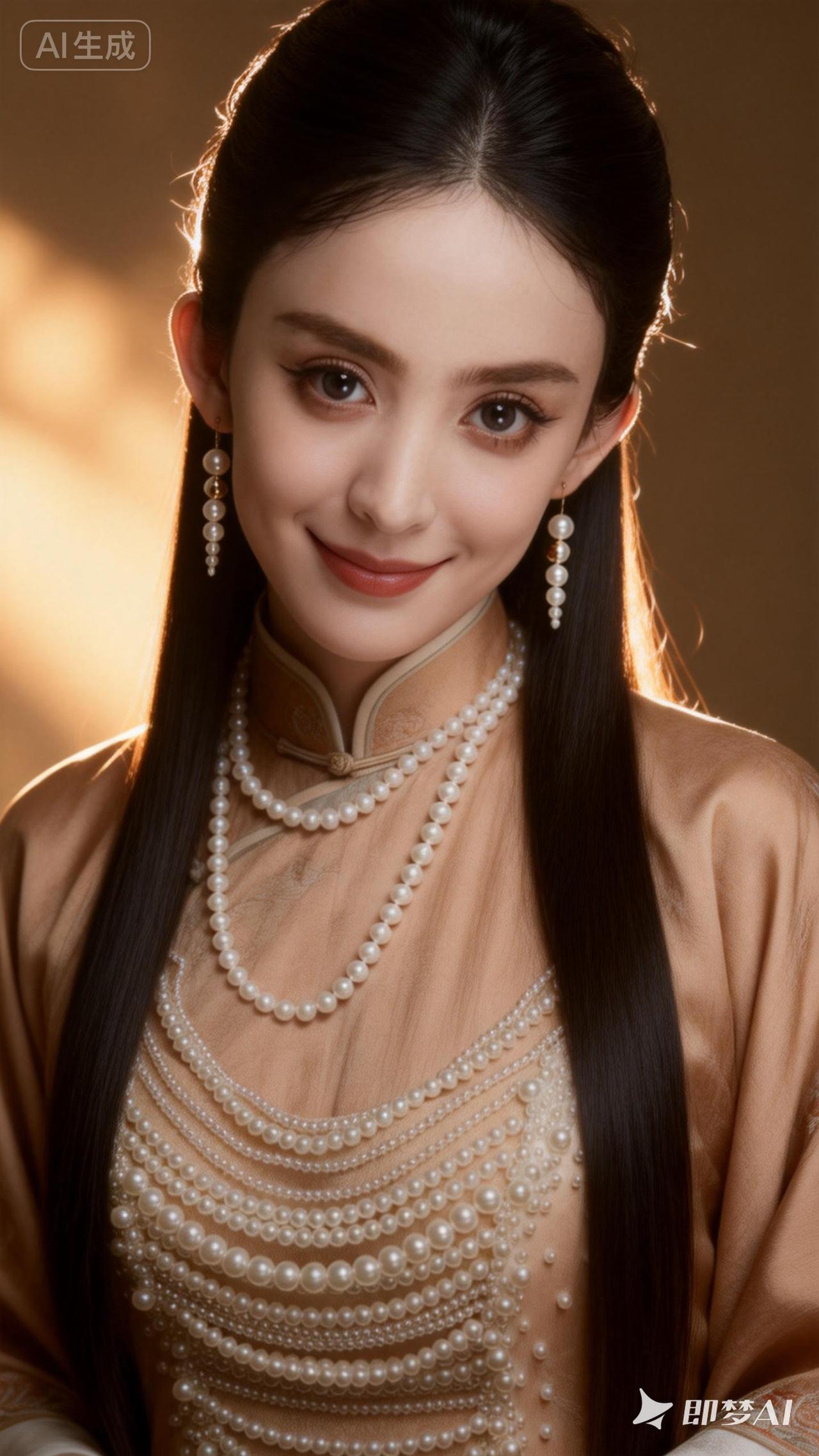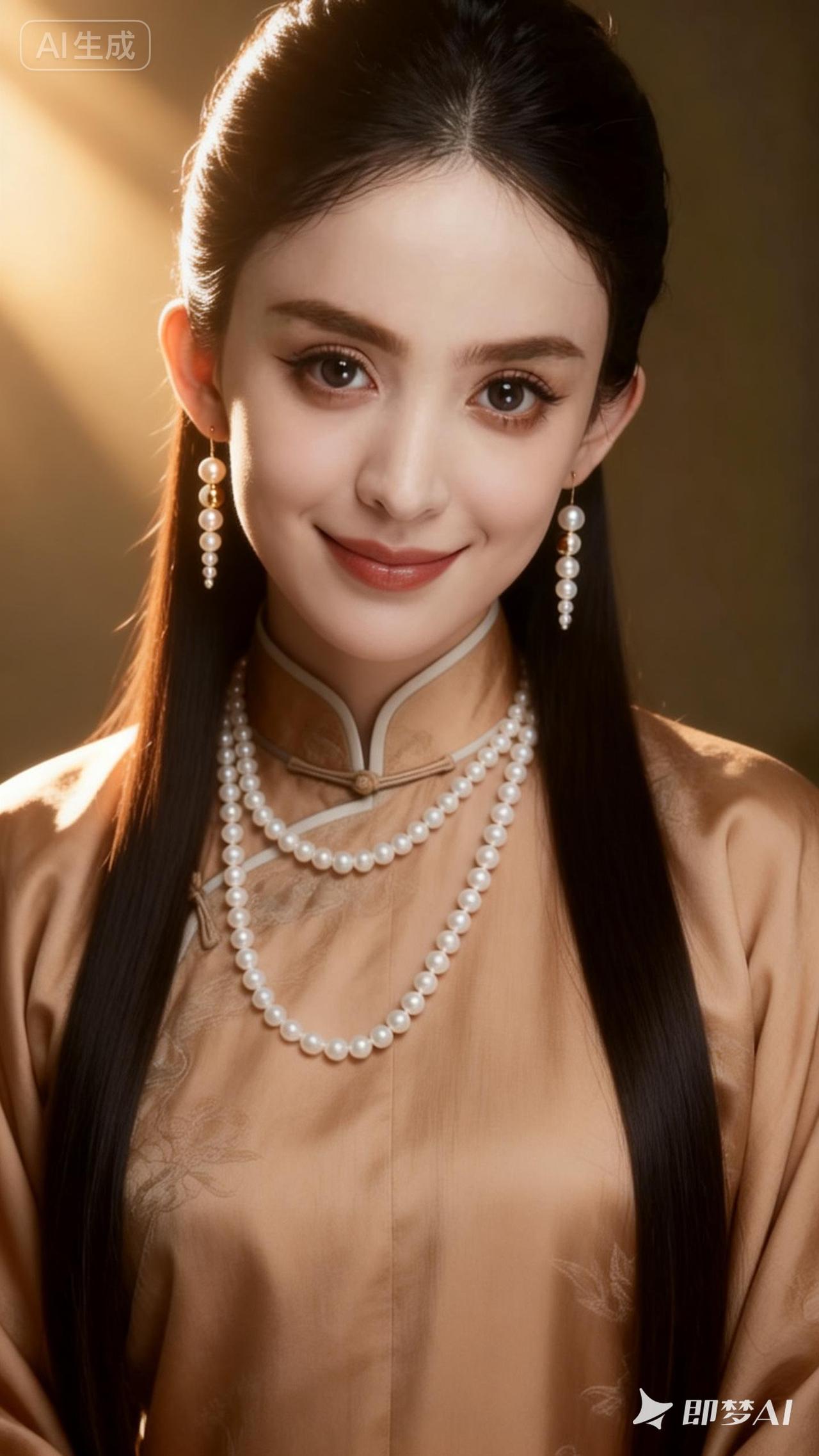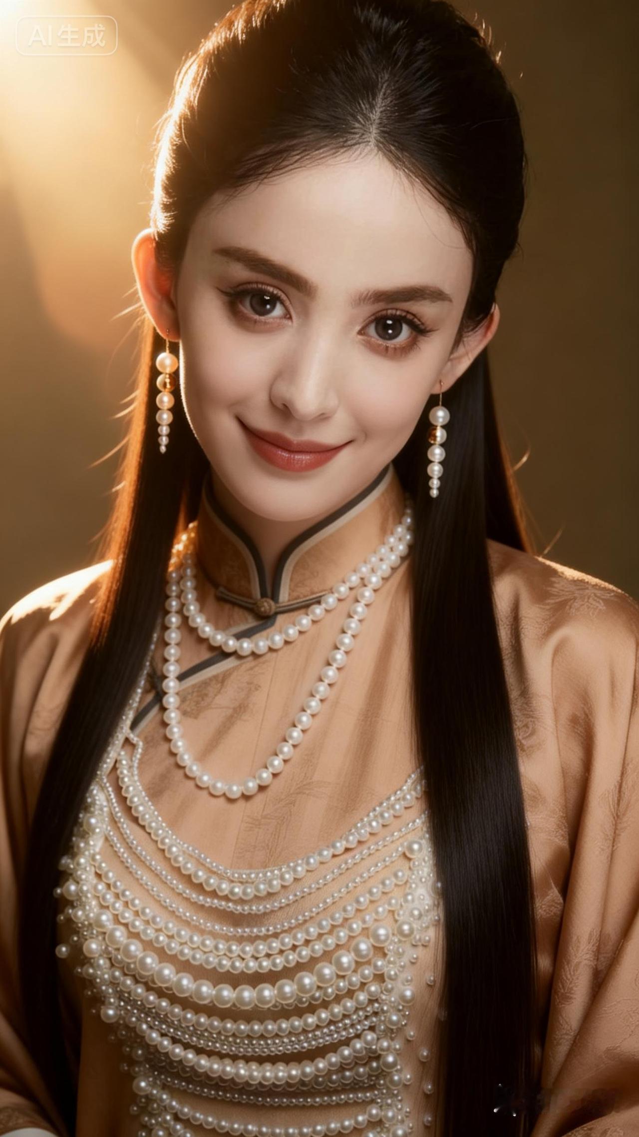 优雅古风美人,珍珠项链点缀,尽显古典韵味。