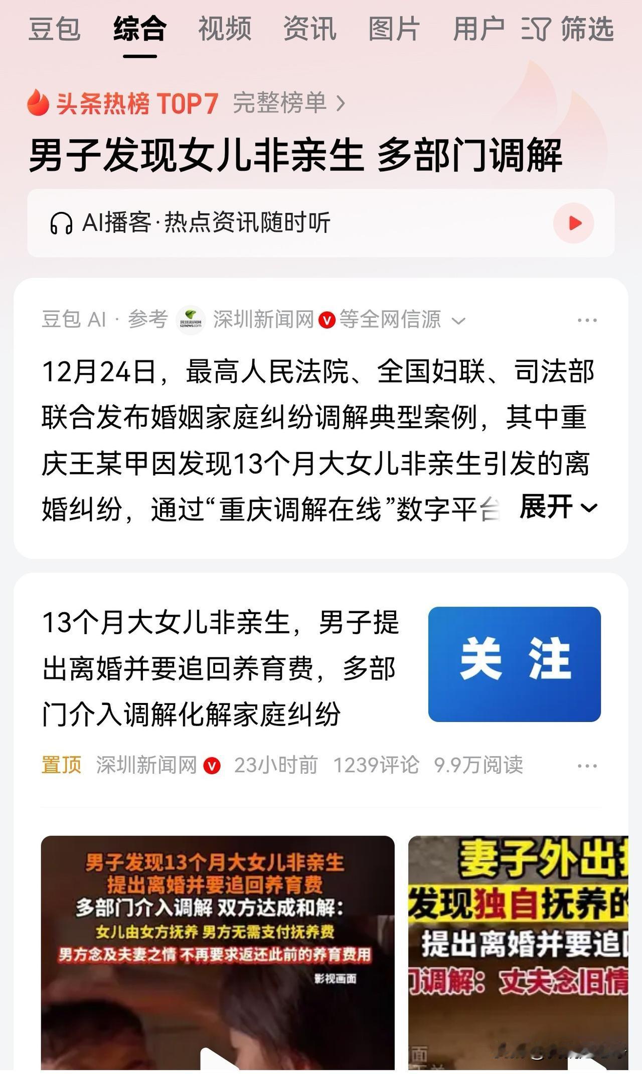 这个新闻我真的是看不懂了。 一名男子发现女儿不是亲生的要求离婚,并追回养育费。 然后多部门介入调解,化解家庭纠纷。 这些文字我都认识,怎么凑在一起。我全都不明白了呢? 你们这些部门到底想要调节什么呢? 让这个男的把绿帽子戴到底吗? 还是说要让这个男的一辈子抚养这个不是自己的孩子? 很奇怪啊,为什么要调节,你到底要调节什么? 这个男的有什么十恶不赦的诉求吗? 这个男的有任何行为犯法了吗? 他也没有打人,也没有杀人。 不就是要个离婚吗? 你们这么多部门到底去调节什么呢? 就非逼着这个男的把绿帽子戴正了然后一辈子当王八给别人养孩子? 然后你们这些有关部门就开心了,这就是你们的政绩业绩了? 这个新闻那真没法说了。 所有的字我都认识,抱在一起可就不理解了。
