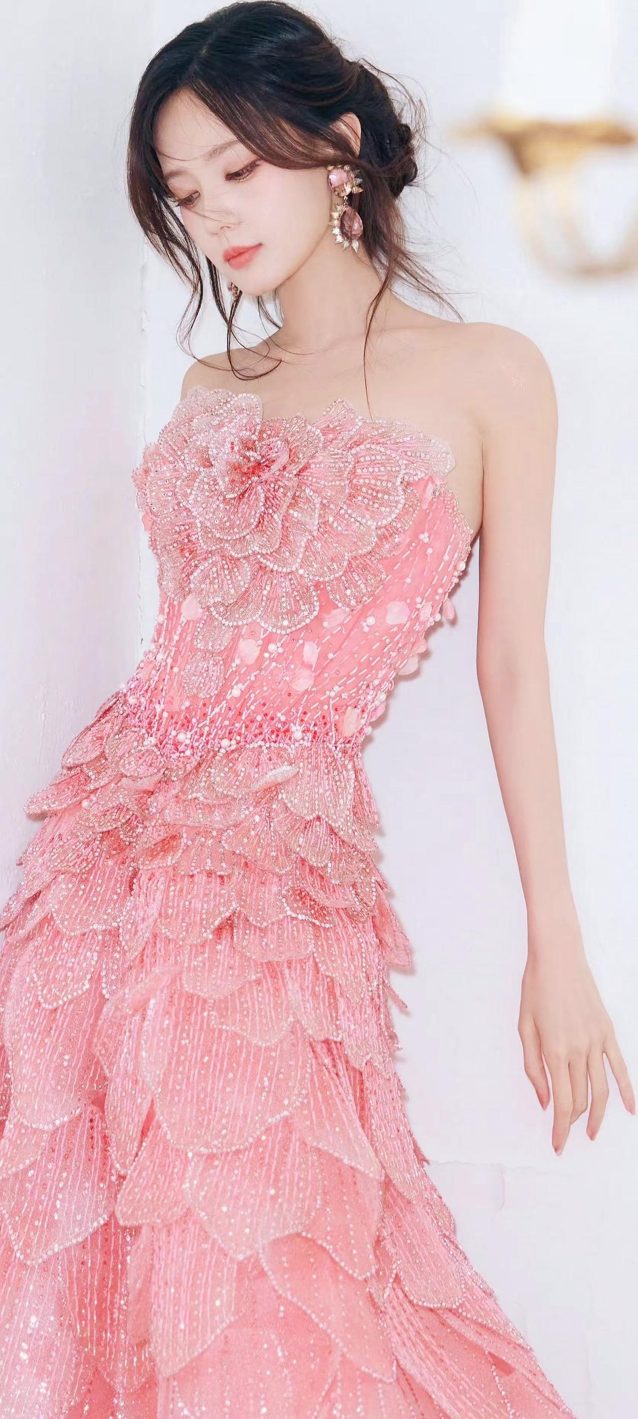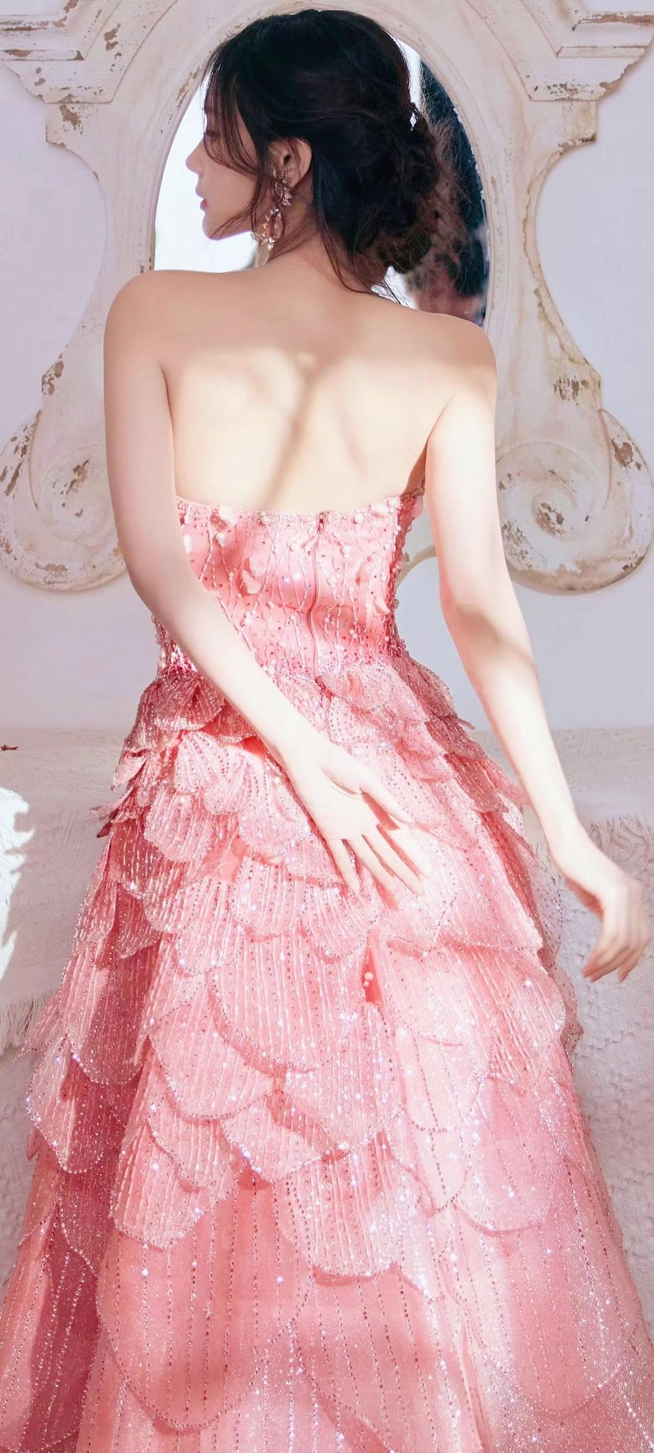 《粉纱星》 她把缎面揉成桃色的月 碎钻裙裾盛着未凉的星 紫纱在身后荡成风的影子