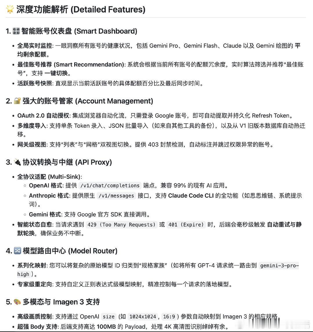 开发者在调用不同 AI 模型时,常面临账号管理繁琐、API 协议不统一以及配额限制等问题,在不同平台的 Session 和 API 之间来回切换非常耗时。Antigravity Tools 是一个高性能 AI 调度网关与账号管理工具,旨在打破不同 AI 厂商间的调用壁垒,提供一站式的本地 AI 中转方案。它不仅能将 Google 或 Anthropic 的 Web 端 Session 转化为标准 API 接口,还支持智能账号轮换与协议转换,确保 AI 业务调用稳定且低延迟。GitHub:github.com/lbjlaq/Antigravity-Manager主要功能:- 智能账号仪表盘,实时监控各账号配额健康状况并自动推荐最佳账号;- 支持一键无缝切换账号,集成 OAuth 2.0 自动授权、批量导入及权限检测;- 全协议适配,提供兼容 OpenAI、Anthropic 和 Gemini 标准格式的 API 端点;- 智能状态自愈,遇到限流或授权过期时自动触发毫秒级重试与静默轮换;- 模型路由中心,支持自定义正则表达式映射,实现专家级的请求重定向;- 深度适配多模态功能,支持 Imagen 3 高级画质控制及超大 Payload 传输。该工具基于 Tauri v2 和 Rust 构建,确保了极高的运行效率与本地数据安全性。支持 Windows、macOS 和 Linux 多平台使用,适合需要深度整合各类 AI 模型的开发者与爱好者使用。