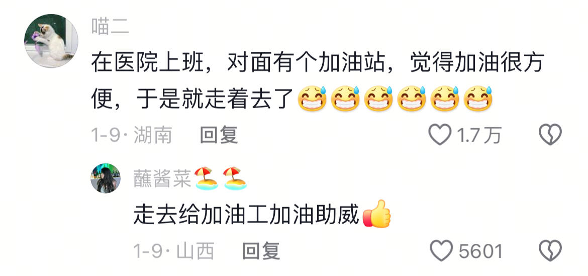 在医院上班,对面有个加油站,觉得加油很方便,于是就走着去了