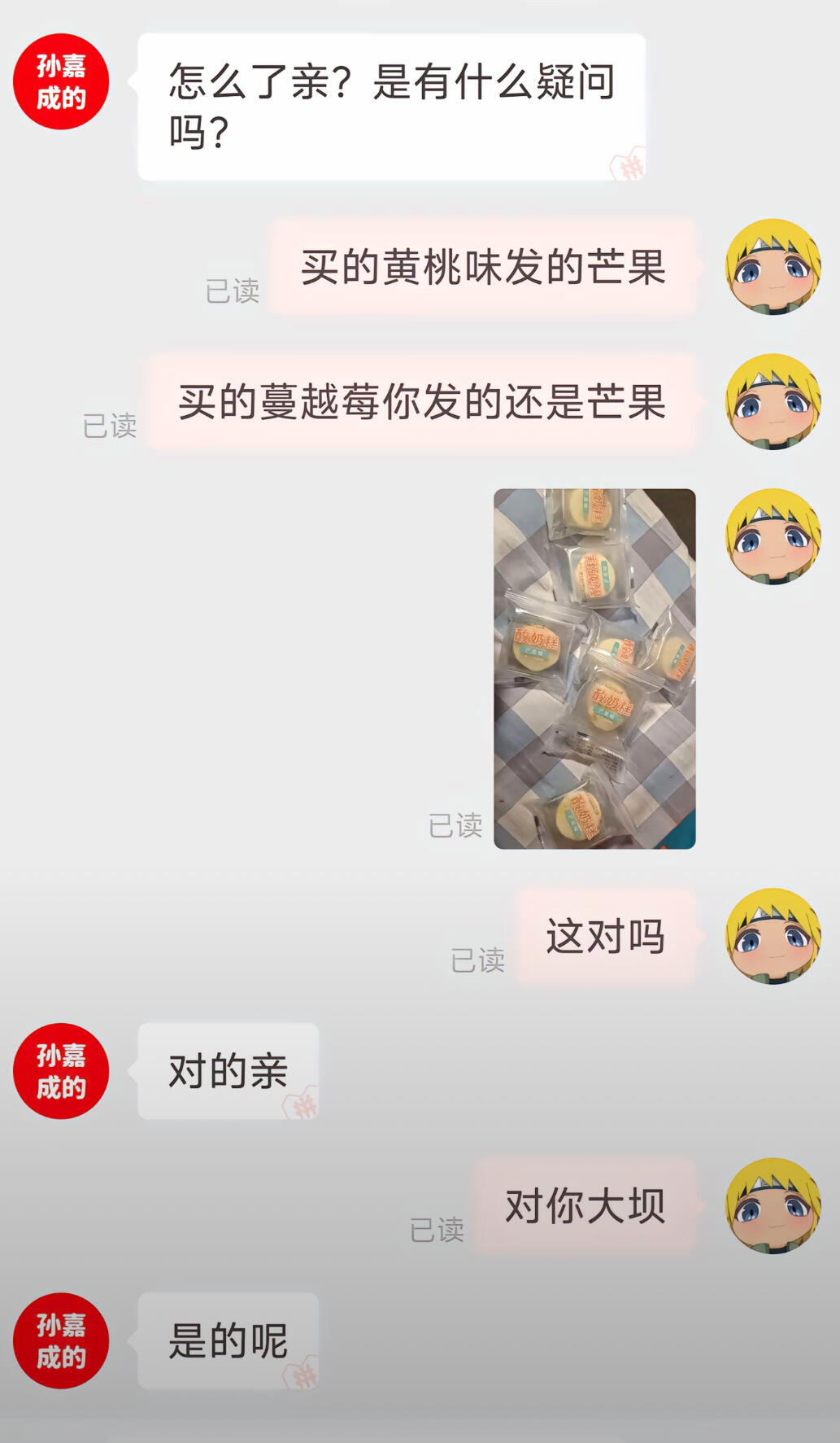 买的黄桃味发的芒果,买的蔓越莓你发的还是芒果