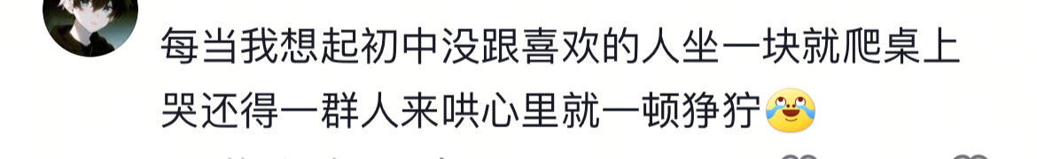 每当我想起初中没跟喜欢的人坐一块就爬桌上哭,还得一群人来哄,心里就一顿狰狞
