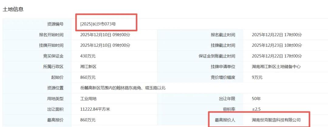 总价破2.07亿!岳麓高新年末土拍收官:2宗工业强链,1宗低密宅地成高端人才福音 年末收官节点,岳麓高新区土拍市场传来重磅消息,3宗优质地块顺利出让,总成交价超2.07亿元,既为园区核心产业发展注入新动能,也为片区高端产业人才补上稀缺居住配套,产城融合发展再添新注脚。 此次出让的地块中,两宗工业用地均花落本土优质企业,精准锚定园区主特产业方向。位于望江路北片的P01-A17北地块,被园区建设工程质量检测龙头企业湖南科创高新工程检测有限公司拿下,成交价398万元,出让面积5178.89平方米,容积率≤2.5,50年工业产权。作为国家级高新技术企业,科创检测此次拿地将打造智能检验检测设备及科研实验产业基地,进一步巩固其在行业内的领先地位,也为岳麓高新区这个湖南唯一检验检测特色产业园筑牢产业链根基。 另一宗工业用地P01-B16北地块,由湖南世克智造科技有限公司以860万元竞得,出让面积11222.84平方米,同样是容积率≤2.5、50年产权的优质工业用地。世克智造主营全品类智能工业工具及仪器设备,此次将落地智能研发制造基地,未来产品不仅覆盖国内市场,更将全方位辐射东南亚、非洲等一带一路沿线区域,契合当下长沙智造出海的热潮,为园区智能智造产业链延伸按下加速键。两宗工业用地的落地,既是企业优化布局、释放产能的关键一步,更让岳麓高新区“检验检测+智能智造”的产业集聚效应愈发凸显。 最受市场关注的,当属此次出让的低密住宅用地P01-B43地块。长沙智墅置业有限公司以21491万元成功摘得,楼面价约3800元/㎡,出让面积55993.54㎡,容积率仅1.01——这个容积率含金量十足,要知道长沙主城近3年仅成交4宗同规格低密地块,妥妥的墅级产品标配,稀缺性拉满。 该地块区位优势尤为突出,地处岳麓高新核心片区,紧邻1113亩玉赤河景观廊道,目前廊道已全面落成,成为片区居民休闲健身的生态绿肺;一路之隔的玉赤河体育公园进入收尾阶段,预计2026年一季度就能投用,游泳、篮球、足球等运动配套一应俱全。教育方面更是顶配,周边长郡智谷高中、明德华兴智谷学校双名校加持,其中长郡智谷是长郡中学直属托管的公办高中,60个教学班规模,师资由长郡统一调配,实现“六个统一”办学标准,妥妥的优质教育资源。 对比当下房价更能看出这块地的潜力,2025年12月岳麓区新房均价已达13991元/㎡,周边同类板块叠墅产品均价约1.3万元/㎡,3800元/㎡的楼面价预留充足产品打造空间。未来项目打造景观廊道低密住宅,将精准对接园区高端产业人才,解决“产业留人易、安居留人难”的痛点,为岳麓高新区导入优质人才资源筑牢居住根基。 从工业强链到居住补位,此次3宗地块出让,既是岳麓高新区年末产业招商与配套建设的双重收官,更彰显片区产城融合的清晰路径——以优质产业载体聚企业,以高端居住配套留人才,未来的岳麓高新,必将成为长沙高端产业集聚与品质居住融合的标杆片区。