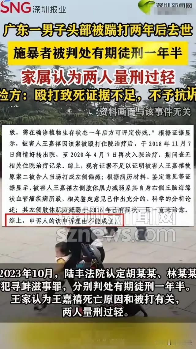 案件核心事实与法律争议焦点 一、案件基本事实 1. 案发经过 2018年10月3日,广东陆丰男子王嘉禧因停车问题与胡某秋、林某波发生口角。二人酒后返回火锅店,将王嘉禧推入便利店殴打,致其左侧肢体偏瘫。监控视频被派出所取走后消失,家属保留的备份成为关键证据。 2. 伤情与死亡结果 • 初始鉴定:陆丰市司法鉴定中心认定王嘉禧为轻微伤。 • 重新鉴定:家属委托暨南大学()鉴定为左侧肢体偏瘫(重伤)。 • 死亡原因:2020年6月王嘉禧去世,初始死亡证明写“脑瘤”,2024年更正为“外伤性脑疝”。 3. 司法处理进程 • 刑事部分:2022年陆丰检察院以寻衅滋事罪起诉,胡某秋、林某波各被判有期徒刑一年六个月。2025年12月,检方以“殴打致死证据不足”不予抗诉。 • 民事部分:家属提起民事诉讼,经历一审、发回重审、异地审理等程序,2025年4月陆河县人民法院重审,判决胡某秋和林某波连带赔偿约35万元。 二、法律争议焦点 1. 罪名适用是否合理? • 家属主张:应定性为故意伤害罪(致人死亡),量刑应为三年以上十年以下有期徒刑,甚至十年以上有期徒刑、无期徒刑或死刑。 • 司法认定:以寻衅滋事罪起诉,理由是殴打行为虽恶劣,但未达到故意伤害罪中“致人重伤或死亡”的直接因果关系标准。 • 关键分歧: • 因果关系:王嘉禧死亡距被殴打间隔20个月,检方认为死亡原因与殴打的直接关联性不足(如自身海绵状血管瘤可能影响死亡结果)。 • 伤害程度:初始鉴定为轻微伤,重新鉴定为重伤,但重伤结果与死亡结果的转化逻辑未被司法机关完全采纳。 2. 量刑是否畸轻? • 寻衅滋事罪量刑标准: • 基础情节:五年以下有期徒刑、拘役或管制。 • 加重情节:纠集他人多次实施,严重破坏社会秩序的,处五年以上十年以下有期徒刑。 • 本案量刑依据: • 法院认定胡某秋、林某波的行为属于“随意殴打他人,情节恶劣”,但未达到“致人重伤或死亡”的加重情节。 • 二人有自首情节,且家属获得部分赔偿并出具谅解书,可能成为从轻处罚的理由。 • 家属质疑: • 殴打导致瘫痪并最终死亡,社会危害性远超一般寻衅滋事,一年六个月刑期明显过轻。 • 打人者之一系派出所所长堂侄,可能存在司法干预(如监控视频消失、回避程序滞后)。 3. 证据问题与程序瑕疵 • 监控视频消失:派出所取走监控后数据丢失,涉嫌毁灭证据,可能影响案件事实认定。 • 死因修改争议:死亡证明从“脑瘤”更正为“外伤性脑疝”,但检方认为修改理由“看错”缺乏说服力,可能掩盖殴打与死亡的因果关系。 • 回避程序问题:派出所所长胡某波与打人者胡某秋系叔侄关系,虽事后申请回避,但前期调查可能存在利益冲突。 三、案件进展与未来走向 1. 检方不予抗诉的理由 • 检方认为“殴打致死证据不足”,主要基于: • 死亡间隔时间较长,可能存在其他介入因素(如自身疾病); • 现有证据无法形成完整链条证明殴打与死亡的直接因果关系。 2. 家属的救济途径 • 民事诉讼:继续推进民事赔偿诉讼,争取更高赔偿金额(如增加医疗费、死亡赔偿金等)。 • 刑事申诉:向上一级检察机关申请复查,或通过立法监督程序推动案件再审。 • 舆论监督:通过媒体曝光推动司法机关重新审查证据链,尤其是监控视频消失、死因修改等关键问题。 3. 社会影响与制度反思 • 司法公正性:案件暴露基层司法中可能存在的“关系案”“人情案”问题,需强化回避制度执行和证据保全规范。 • 寻衅滋事罪适用边界:需明确该罪名与故意伤害罪的区分标准,避免以轻罪替代重罪,削弱对严重暴力行为的惩治力度。 • 被害人权益保护:完善被害人救助机制,如提供法律援助、心理干预等,避免“因案致贫”或“维权无门”。陆丰暴力致死案 陆丰案