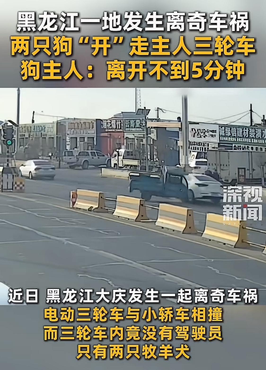 “这下解释不清楚了!”黑龙江大庆,街头发生了一个离奇的车祸,一辆轿车好端端在路上开着车,没加塞、没抢道,一辆电动三轮却直愣愣地冲过来,司机下车正准备理论,结果发现三轮车里压根没人,只有两只德牧正坐在车斗里,一脸无辜。撞都撞了,连个能对话的对象都没有 后来一查才明白,三轮车车主下车买橘子,车钥匙没拔,刹车也没拉紧,想着离开一会儿问题不大。偏偏车里还带着两只狗,一只踩着脚踏板,一只碰到了方向把,车就这么自己上路了 不到五分钟,事故就发生了。交警的认定很直接,三轮车车主负全责,理由也很清楚,车辆管理不到位 很多人第一反应是狗闯祸,人倒霉。冷静想想,狗只是碰巧成了最后一环。真正的问题不在狗身上,在于人对风险的判断太随意。电动车也好,三轮车也好,只要是能动的交通工具,就不该存在侥幸心理。钥匙不拔、刹车不拉,这种事平时没人提醒就容易被忽略,一旦出事,后果全得自己扛 说实话,这个事虽然听着挺搞笑的,但真的是一个提醒。很多人觉得短暂停一下无所谓,觉得自己心里有数,现实往往不按经验走。车不会分辨你是不是只走开两分钟,更不会管你车里坐的是人还是狗。规则看起来麻烦,是因为它们本来就是用来对抗意外的 所以,别怪狗,狗只是狗。该拔的钥匙得拔,该拉的刹车得拉,该守的规矩得守。对自己负责,也是对别人负责。马路上没有“大概没事”,只有“安全”和“出事”两种结果。这次事故赔的是钱,下次万一呢?有些责任,真背不起