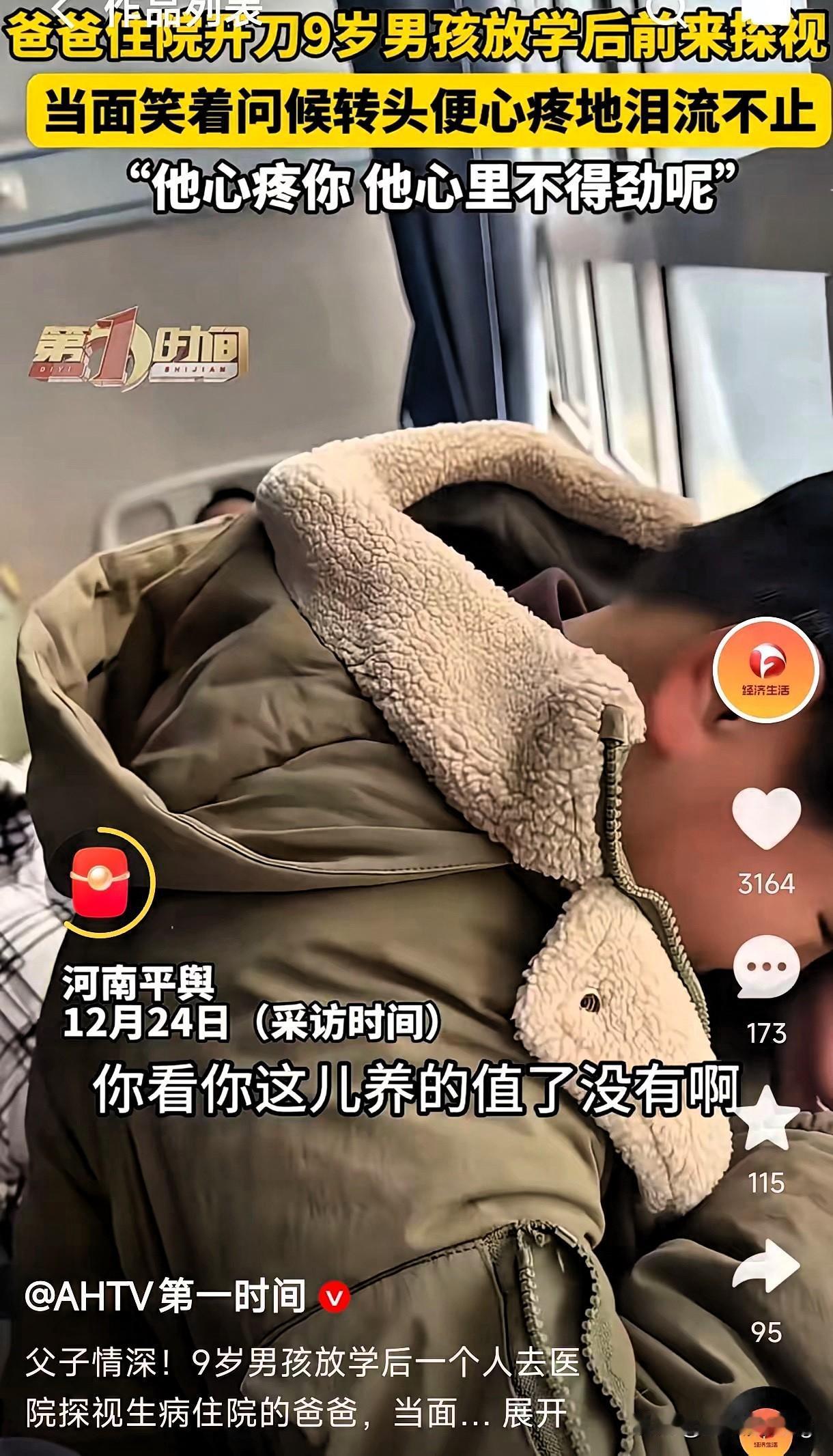 破防了!9岁男孩独自探病,躲在窗帘后偷偷抹泪的样子,看哭无数人 真的被河南平舆这个9岁男孩戳中泪点了!都说养儿防老,可在这个孩子身上,我看到了比这更珍贵的东西。 父母怕孩子担心,瞒着他爸爸急性阑尾炎住院的事,可男孩还是知道了,放学后一个人悄悄跑到医院。当他看到病床上脸色苍白的爸爸,那句"爸,我来看你了,你吃饭了没",简单的问候里全是藏不住的关心。 最让我动容的是,男孩听到爸爸虚弱的声音,没当着父母的面哭,而是悄悄躲到窗帘后面抹眼泪。他不想让爸妈担心,可那份心疼却藏都藏不住。 很多人说现在的孩子不懂感恩,可这个男孩用行动告诉我们,孩子心里都跟明镜似的,谁对他好,他都记在心里。父母的爱,孩子都看在眼里,也会用自己的方式回馈回来。 这个小男孩的举动,让我突然明白,养孩子的意义从来不是为了养老,而是在彼此的陪伴中,互相温暖,互相治愈。 你身边有这样懂事暖心的孩子吗?快来评论区分享一下吧!
