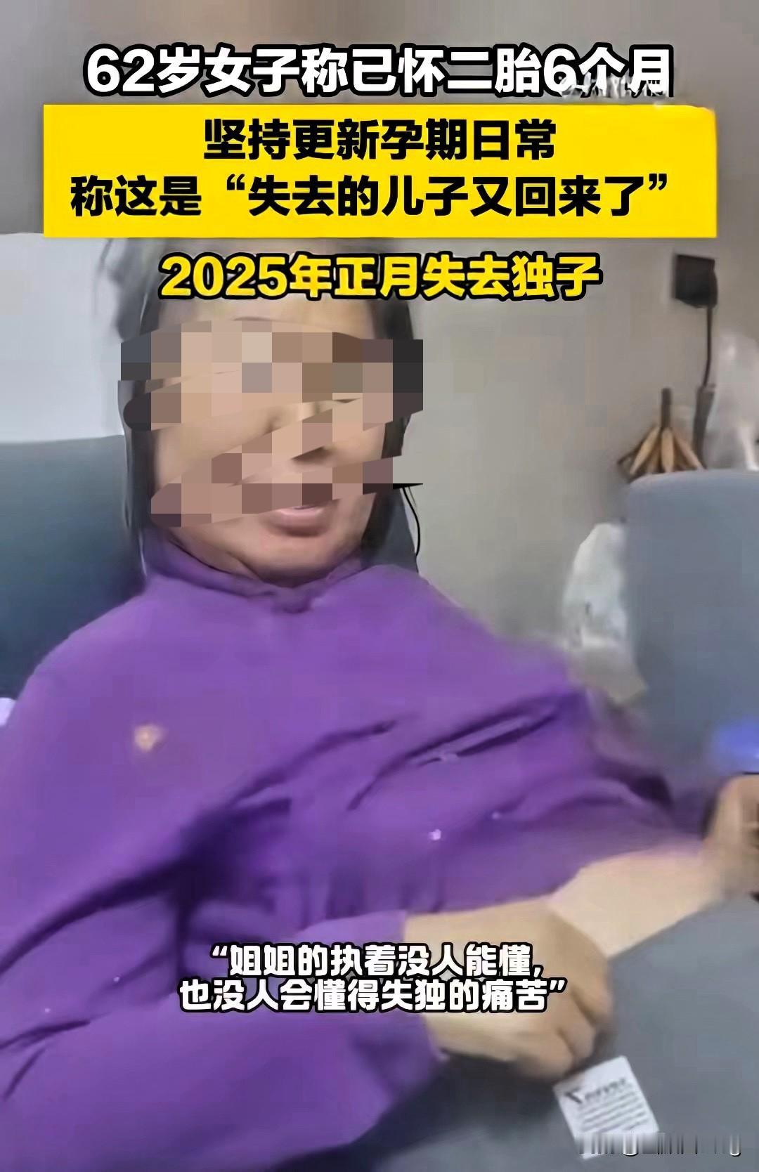 泪目!62岁失独母亲意外怀孕,一句"儿子回来了"看哭无数人 看到吉林这位62岁母亲的经历,我心里又酸又暖,真的特别能理解她的心情。 年初刚失去唯一的儿子,那种天塌下来的痛苦,外人根本没法感同身受。这份悲痛还没散去,意外怀孕的消息就来了,对她来说,这或许就是上天给的救赎,是失去的儿子又回到了身边。 网上的讨论我也看了,有人支持,有人反对,其实大家的出发点都是好的。反对的人担心她超高龄妊娠的风险,毕竟62岁怀孕,并发症、分娩风险都成倍增加,身体能不能扛住真的是个大问题。担忧的人则想到了长远,以后能不能陪孩子长大,孩子会不会因为母亲的年纪而有压力,这些都是很现实的问题。 但我觉得,我们没有资格替她做决定。失独的痛是刻在骨子里的,这个新生命对她来说,是活下去的希望和勇气。只要她做好了万全准备,有医生的专业守护,我们就该送上祝福。 生命从来都有无限可能,这份跨越年龄的母爱,本身就足够伟大。如果你是这位母亲,会做出怎样的选择呢?