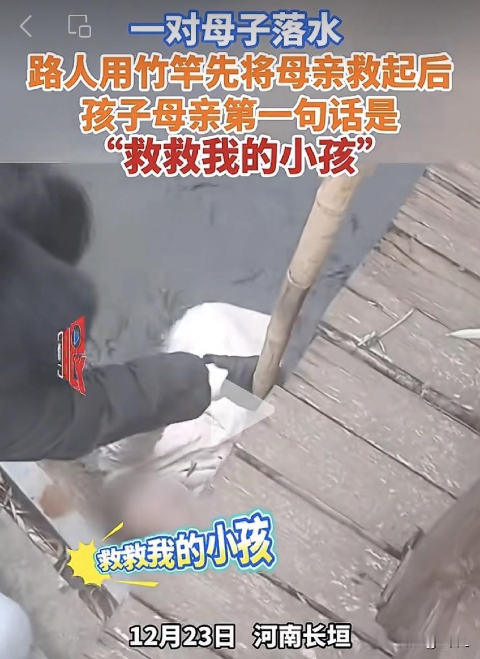 零下冬日她脱下羽绒服裹住陌生娃:我不是英雄,是“本能选手”! 这年头刷视频,不是婆媳吵架就是路人互怼。但就在昨天,河南新乡的一个公园里,上演了冬日最暖一幕。 一位黑衣女子用一根竹竿,从两米深的水里“钓”上来一对母子,还把自己羽绒服“报销”给了陌生孩子! 12月23日中午,长垣市某公园静悄悄。突然一声尖叫划破平静:“救命啊——有人掉水里了!” 正在散步的杜晓晶和丈夫一听,秒变“百米冲刺选手”。跑到岸边一看,好家伙!一位母亲和七八岁的男孩正在冷水里扑腾,两人相隔两三米,眼看都要撑不住了。 “水有两米深,大人在里面都站不住脚。”杜晓晶后来回忆。这哪里是公园湖,分明是个“冷水陷阱”! 关键时刻,杜晓晶眼尖——岸边正好有救生竿! 这配置,堪比游戏里的“刷新在正确位置的装备”。 三人组成临时救援队:丈夫和另一位路人稳住阵脚,杜晓晶抄起竹竿就伸向离岸较近的母亲。 母亲刚被拽上来,浑身滴水却带着哭腔拼命喊:“快救救我的孩子!” 此时男孩已经在远处发抖,小脸煞白眼泪汪汪:“救救我……” 竹竿再次伸出,精准“捕捞”——孩子上岸时,嘴唇都冻紫了。 孩子上岸后直打哆嗦,杜晓晶想都没想,唰地脱下自己的羽绒服,把湿漉漉的小身板裹成“粽子”。而她自己在寒风里只剩件薄毛衣。 “谁看到都会这么做的。”她说得轻松。可现场视频里,那个毫不犹豫的脱衣动作,妥妥是冬日里最帅的“皮肤赠送”。 事后才知道,原来是男孩在岸边玩耍时脚滑落水,妈妈情急之下跳下去救,结果两人都成了“溺水队友”。 得亏湖边配了救生竿,得亏路过的是“行动派”而不是“围观党”。 视频传开后,有眼尖网友认出:“这不是卫健委的杜晓晶吗?” 没错!这位39岁的“竹竿女侠”,平时在长垣市卫健委人事科上班,标准“办公室画风”。同事看到视频都惊了:“平时温温柔柔,关键时刻这么猛?” 杜晓晶自己也懵:“天冷人少,还以为没人看见呢……” 结果第二天上班,慰问信息炸了手机。她反复说:“真是件小事,本能反应而已。” 网友怒赞,评论区瞬间暖成“夸夸现场”: “这’本能’可不是人人都有!” “给救生竿点赞!更给用救生竿的人点赞!” “妈妈自己刚脱险就喊救孩子,泪目了……” “羽绒服一脱,公务员形象瞬间两米八!” “建议给这位姐姐年终考核直接加‘见义勇为’项!” 据悉,人工河旁边设置有安全提醒标语,并放置有救生圈、救生竹竿、绳索等救援设备。 这场冬日救援,没有夸张的英雄叙事,只有三个关键词:本能、工具、温暖。 杜晓晶说这是“小事”,可恰恰是这种“理所应当”的本能反应,最见人心。别忘了,她脱掉羽绒服时,也没指望谁能还她一件新的。 为母则刚的母亲,路见不平的路人,还有那根“刚好就在”的救生竿——这大概就是普通人之间,最朴素的“生命守护联盟”吧。 温馨提示:湖边玩耍千万小心!遇险别蛮干,巧用救生竿,呼救要及时。 愿每个意外都有温暖的“神助攻”! 素材来源:长江日报、大象新闻,侵联删!