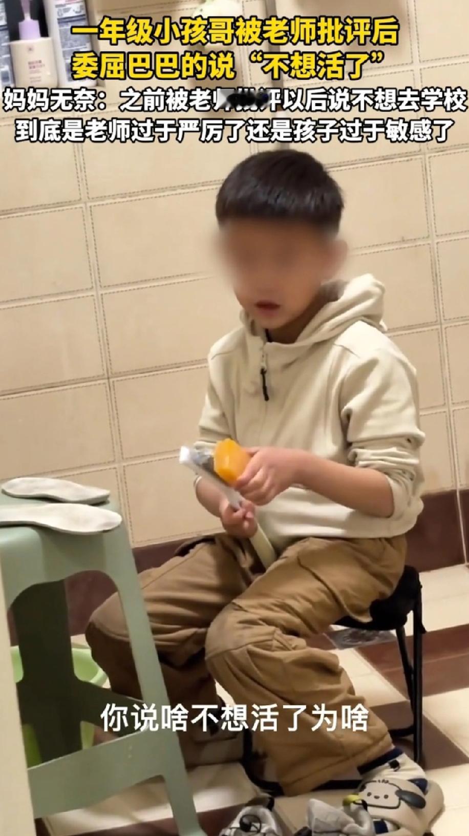 湖北,一年级小孩哥被老师批评后,坐在凳子打磨着肥皂,委屈巴巴的说“我都不想活了。