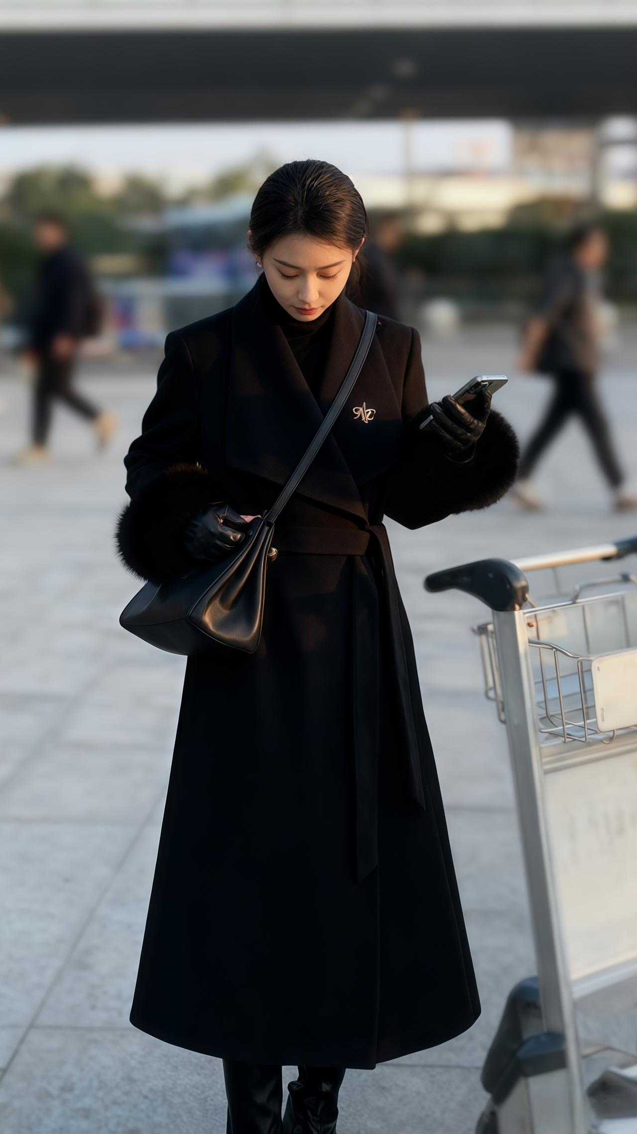 韩系穿搭大衣外套穿搭冬季搭配黑色高级感穿搭