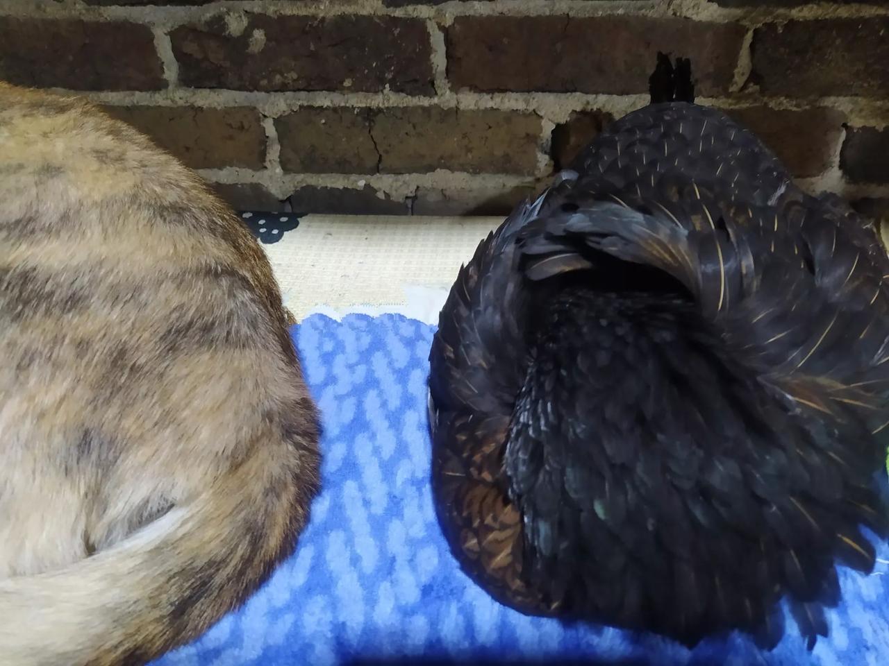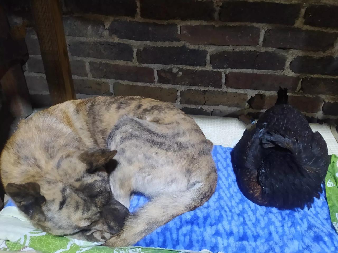 淘气的小黑,就是不愿跟小白睡一起,真是前世的冤家,今世的对头[捂脸] 鸡窝里面垫了厚厚的松针,松软又暖和,可它愣是不愿睡鸡窝,非要跟狗子挤在一块睡,我试过干预,晚上趁它睡的迷糊,轻轻把它抱进鸡窝,但每次我前脚刚走,它后脚就跟了出来,还叽叽咕咕的表示抗议和不开心,反复几次,我放弃了,非要跟狗挤地铺那就挤吧,只要狗子自己没意见,我也懒得管了[笑] 好在它很有分寸感,若狗子还没睡,而它想先睡,它只会趴在狗垫的边边上,精准的找好自己的那一小块位置,把最中心那一块位置留给正主,在这一点上,小黑从不曾界越过,分寸感把控的死死的 而且小黑的智商一直都是在线的,白天它从不在房间拉屎,哪怕是晚上门没开,它也会跑到房间里水笼头下面的小水池上,纵身一跃,站在水池边上,屁股对准水池,把屎拉在水池里,早上我起床后,拿水一冲就完事,所以说,我也不用担心,它会在狗窝里拉屎,想睡就睡吧,它高兴就好[笑]